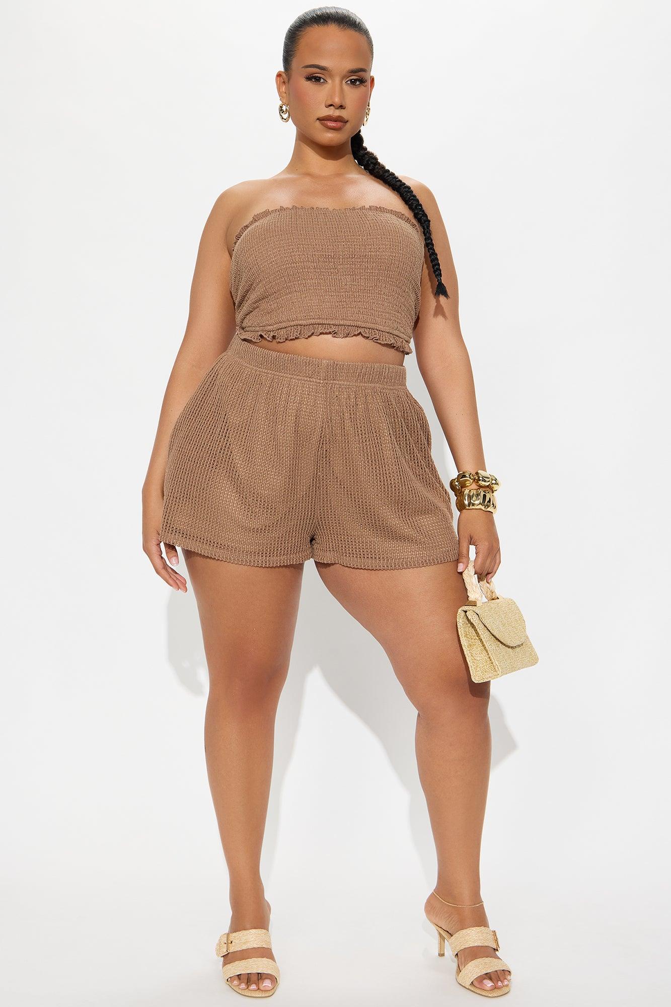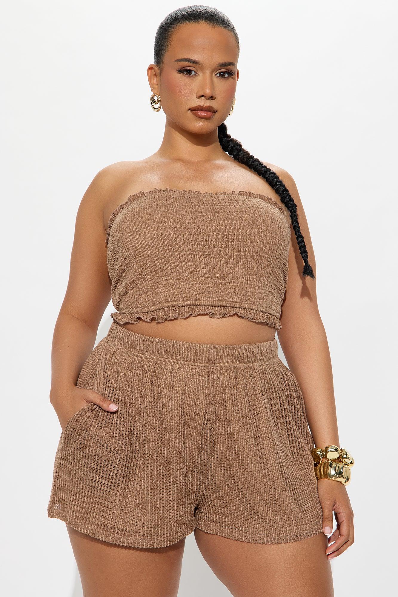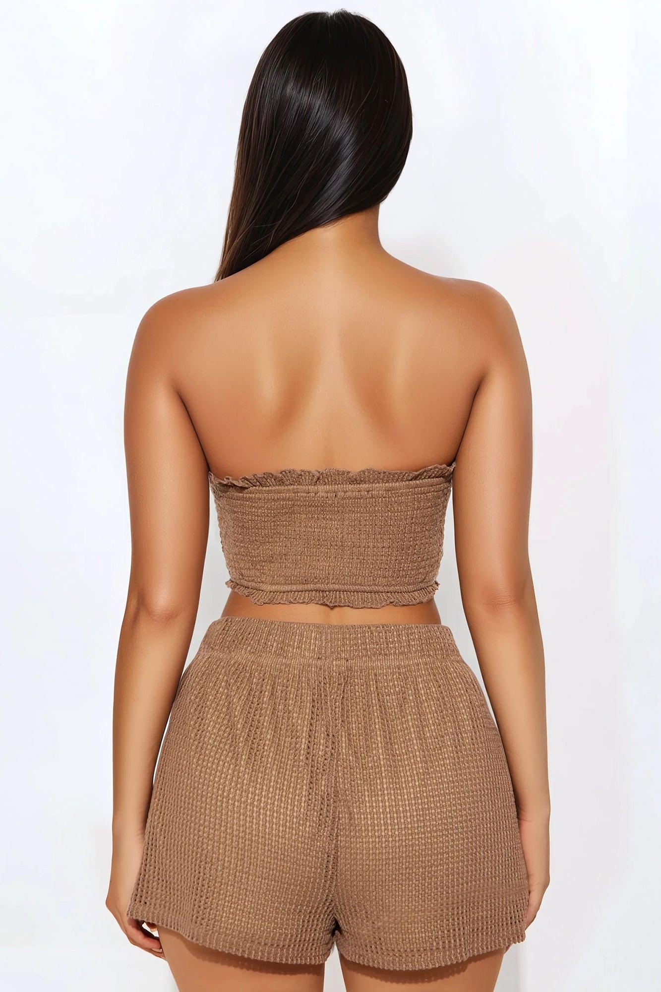 Available In Brown, White, And Coral. Tube Top And Regular Straight Short Set Stretch Fully Lined Elastic Waistband Pockets Self / Lining: 100% Polyester Imported