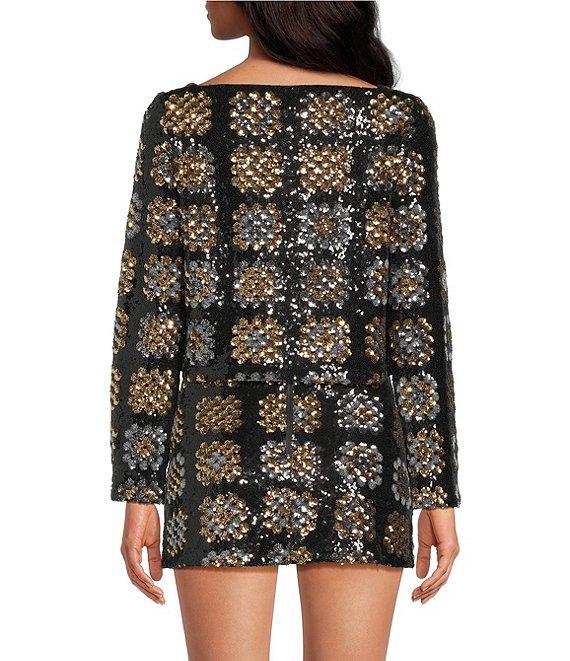 From Chelsea & Violet, this top features: Sequin fabrication Check pattern Straight neckline Bracelet sleeve length Concealed zipper center back closure Approx. 18.5" length Self: polyester fiber content Lining: polyester Dry clean Imported. Dillard's Exclusive.