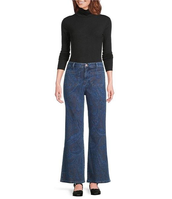 From Chelsea & Violet, these pants feature: Embroidered denim fabrication Flare leg Center front zip closure 2 front pockets Unlined Approx. 31" length Cotton/elastane Machine wash cold Imported. Dillard's Exclusive