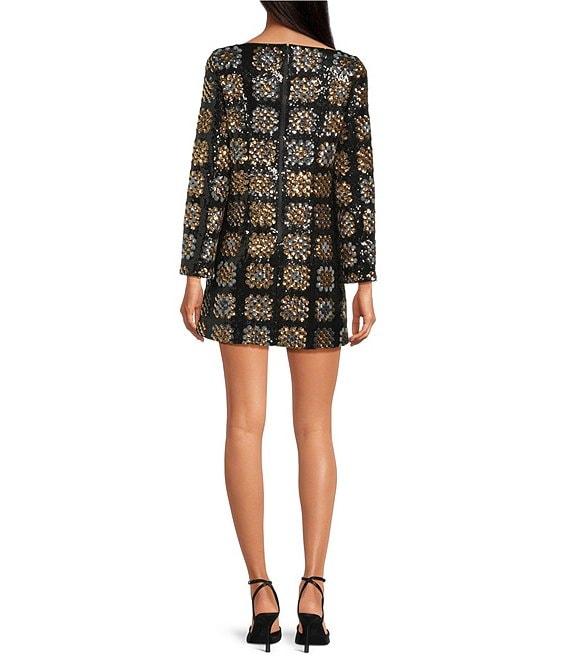 Chelsea & Violet Twiggy Straight Neck Long Sleeve Check Sequin Mini Dress