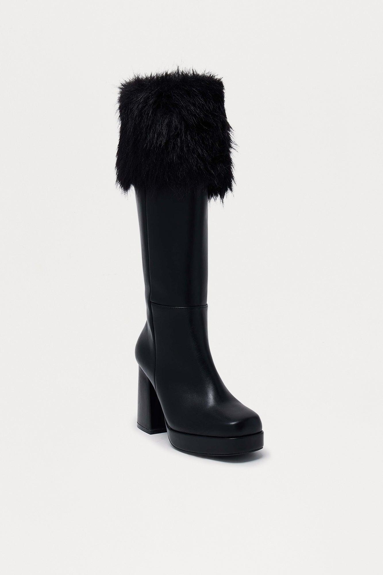 Cher Faux Fur Trim Boots - Black Female