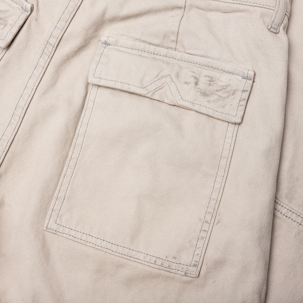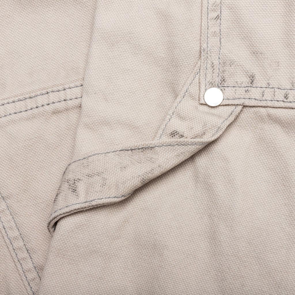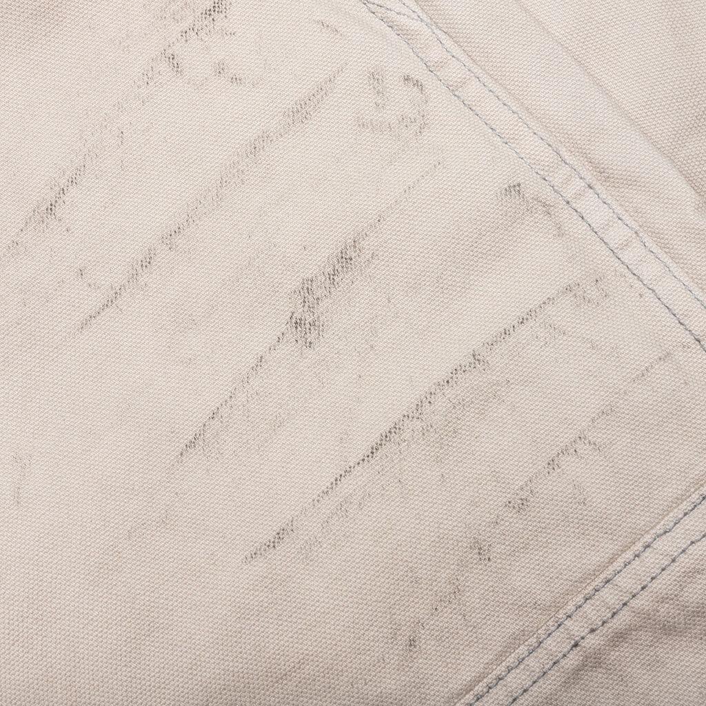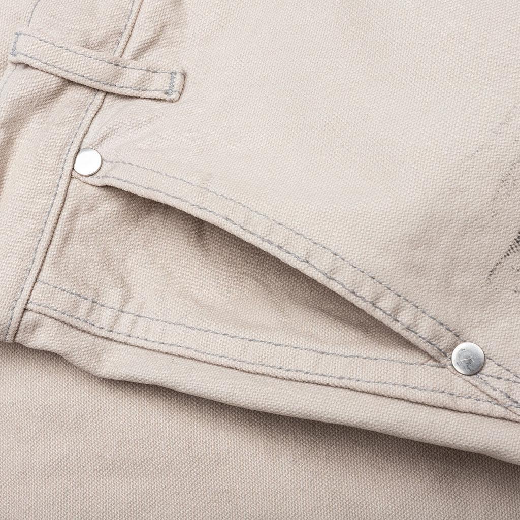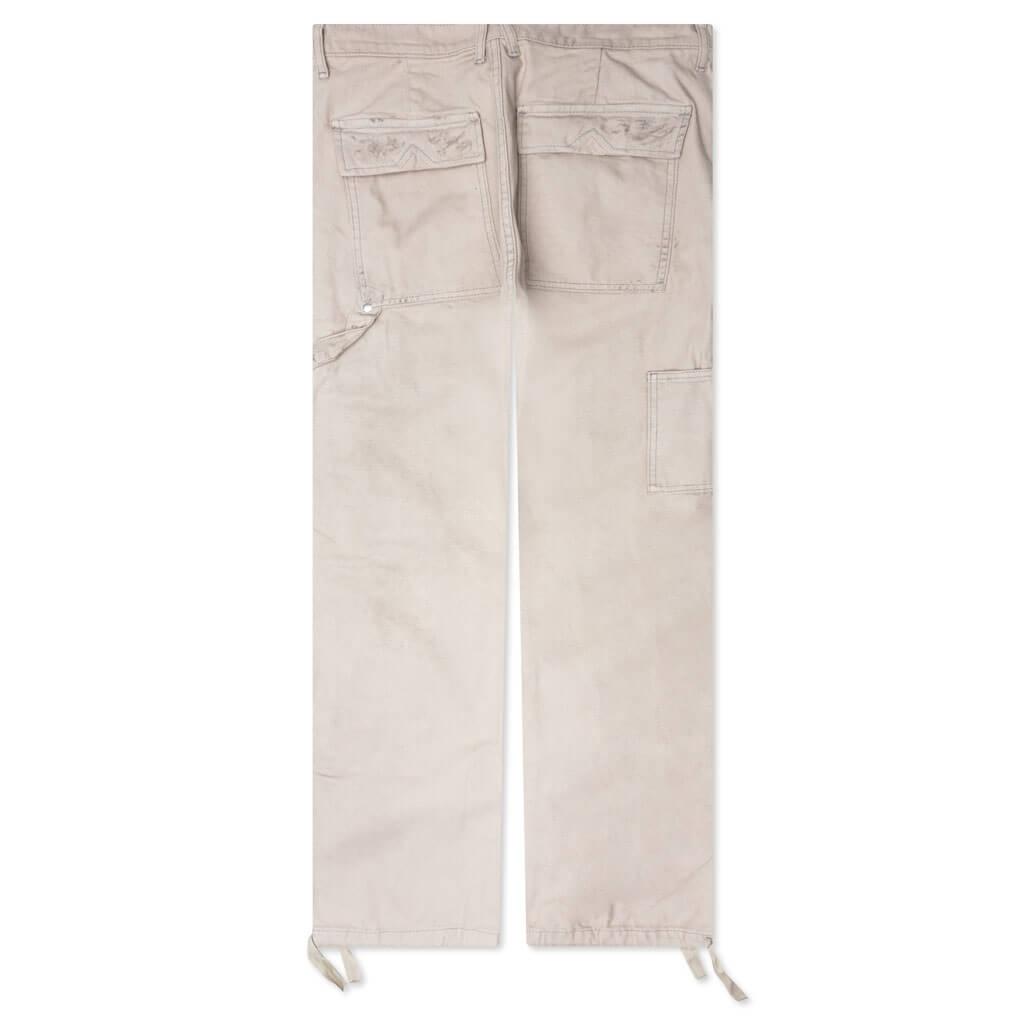 The Chevron Painter Pant from Rhude features a mid-rise and slightly flared fit, offering a modern silhouette. The cotton twill construction is highlighted by tonal topstitching in a paneled design. Adorned with custom RHUDE hardware. Featuring a zip fly with button closure, with two side pockets and two rear flap pockets. The distressed paint detailing on the front and rear adds a unique touch. Adjustable cuffs with raw-cut details provide a personalized fit. 100% Cotton Standard fit Mid-rise Rhude hardware Zip fly + button closure Distressed paint detailing Adjustable cuffs Style No: RHPF23PA100123721671