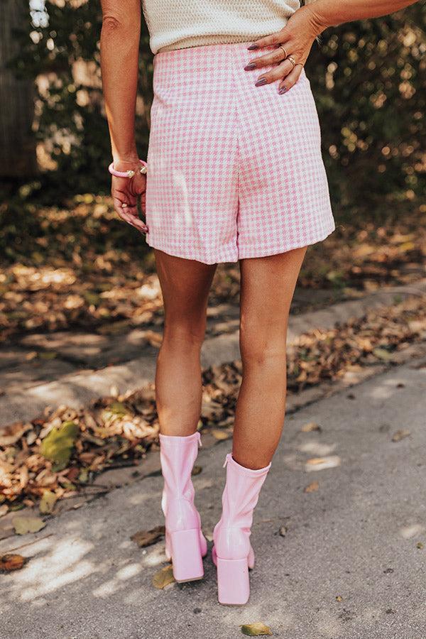 There might be a chill on the horizon, but there's still time to wear this cutie! This skirt features lightweight pink and white houndstooth material, four accent buttons on the front, a high waistline, and a flattering silhouette that ends in a straight upper-thigh length hemline with accent v-notches in the front! Measurements S : Hip 34", Inseam 3", Length 13", Waist 26". M : Hip 36", Inseam 3", Length 14", Waist 28". L : Hip 38", Inseam 3", Length 14", Waist 30".