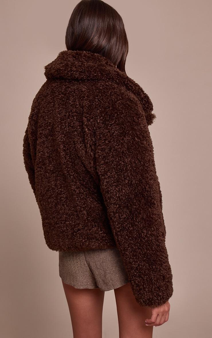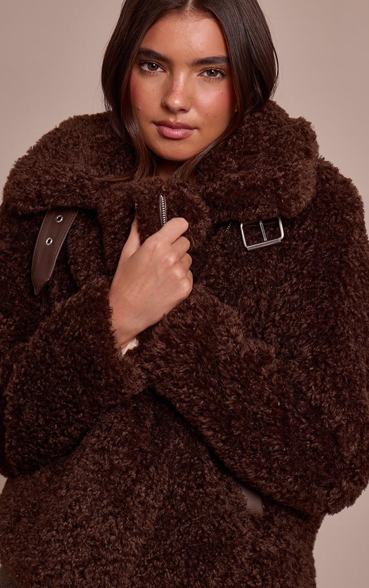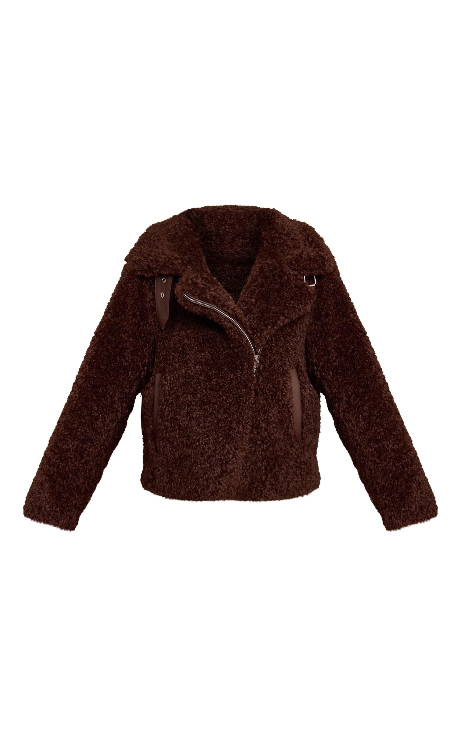 Cultivate an effortless cool with the ultimate outerwear statement. The chocolate brown borg aviator delivers a knowing edge to your daywear, featuring an artful, oversized silhouette framed by a broad lapel collar and an asymmetric zip fastening. Defined by its rich chocolate brown hue and the distinctive buckle detail at the neckline, this piece perfectly balances bold structure with relaxed appeal. Style yours over a simple cream sweater and tailored straight-leg pants, grounding the look with a pair of sleek black ankle boots for an assured day ensemble, completing the aesthetic with refined gold hoops. This coat is your definitive answer to confident, artful layering.Length approx 48.5cm/19inch (Based on sample size S)Model wears size SModel Height - 5ft 7inchp]:!mb-4inch>Category: OuterwearProduct type: AviatorColor: Chocolate BrownMaterial: BorgSleeves: LongOccasion: Day