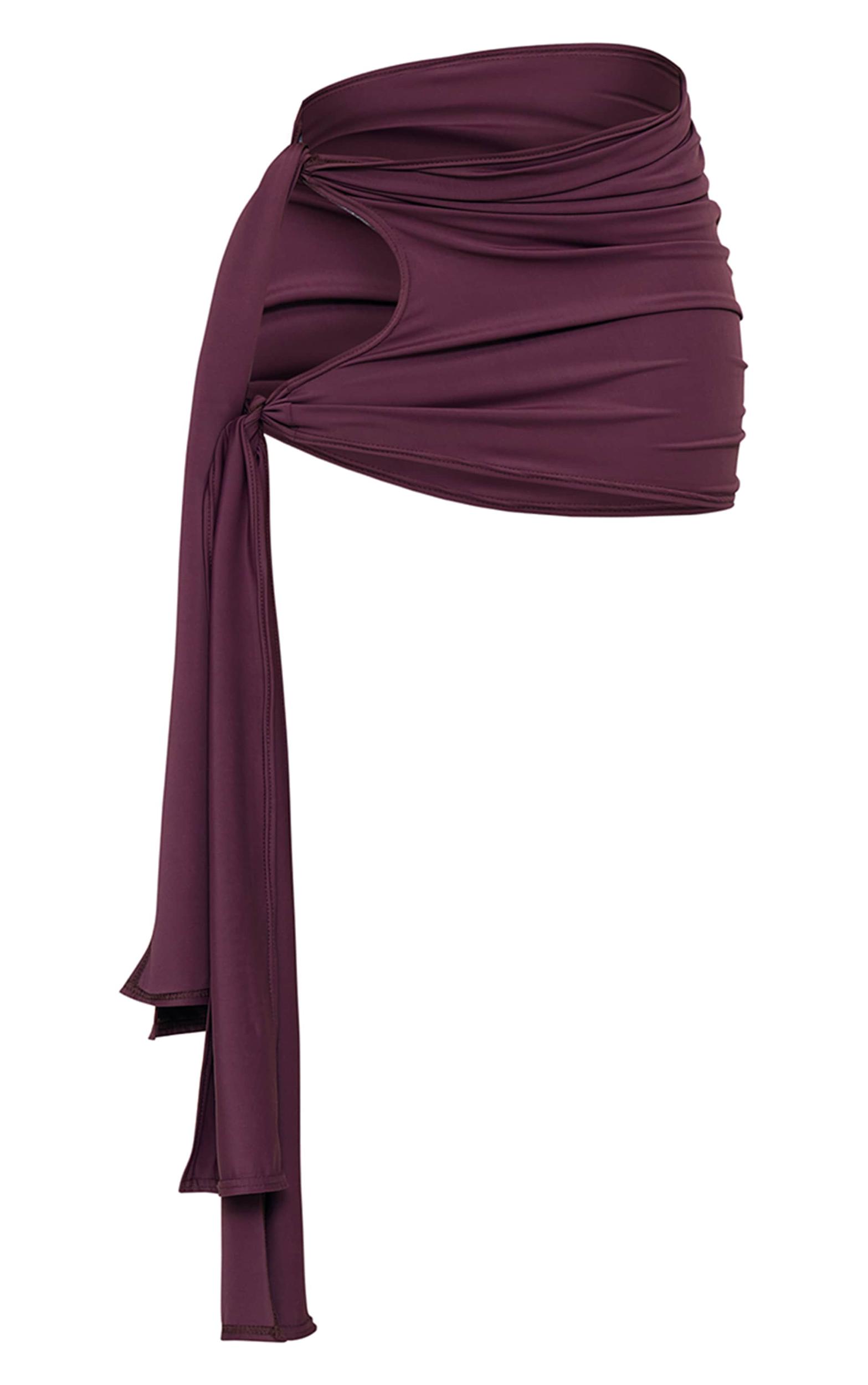 Take your weekend look to a whole new level with this chocolate brown matte sculpt tie side cut out mini skirt. Brought to you in a chocolate brown matte sculpt material with a tie side design and cut out detailing, how can you resist? Style this mini skirt with a top, heels and statement gold accessories for a look that is guaranteed to steal all the stares. Length approx 33cm/13inch (Based on a sample size UK 8) Model wears size UK 8/ EU 36/ AUS 8/ US 4Model Height - 5ft 7inchp]:!mb-0inch>Category: BottomsProduct type: Mini SkirtColor: Choc BrownMaterial: Slinky JerseyOccasion: Evening