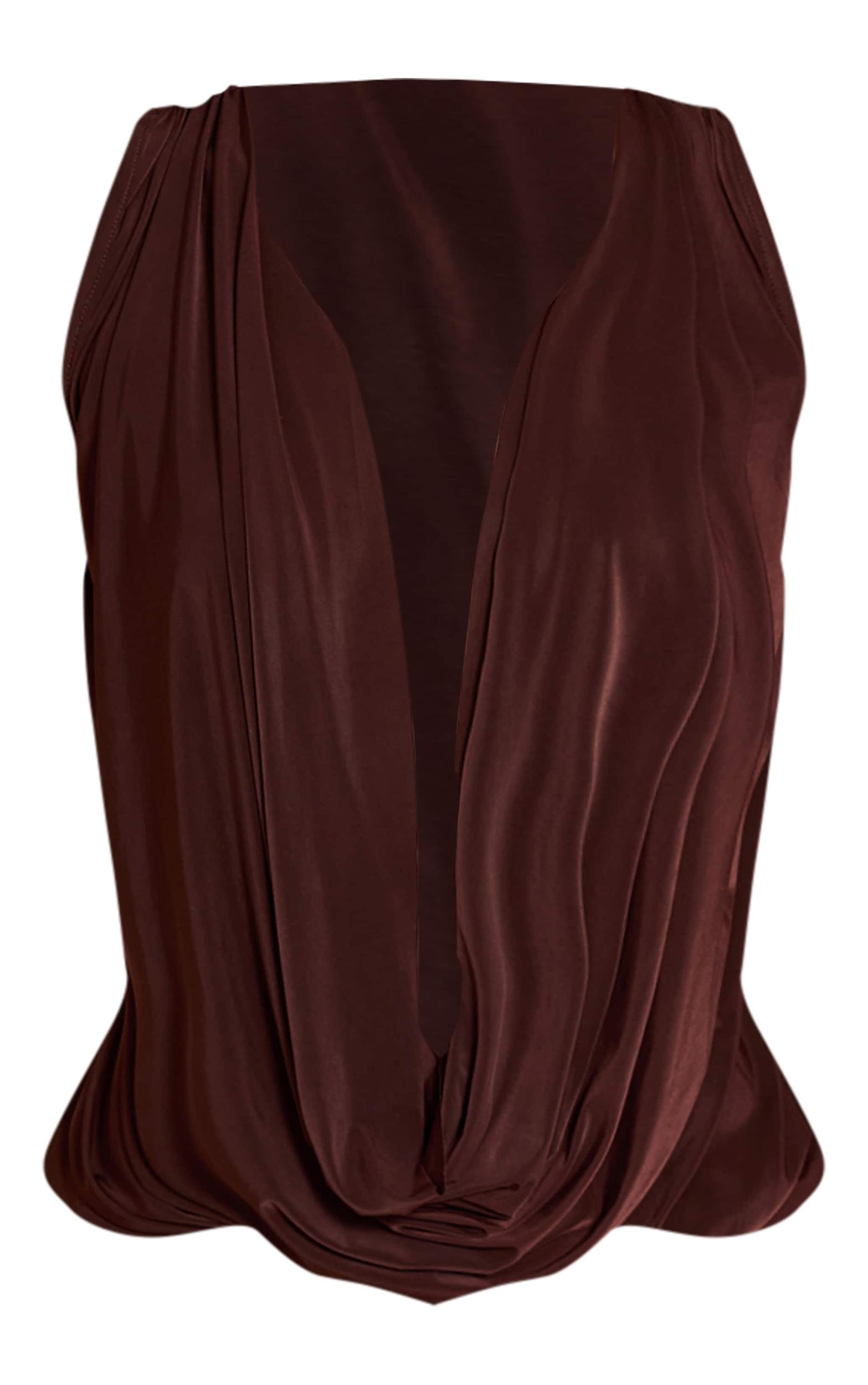 Unleash sophisticated depth this evening. The chocolate double layer slinky extreme cowl neck top is designed to make an impact, featuring a dramatically draped neckline that plunges for a confident silhouette. Its relaxed, sleeveless cut ensures an effortless profile. Pair yours with tailored wide-leg pants for a sharp, contemporary statement, or opt for a sleek midi skirt and barely-there heels, completing the look with delicate gold jewelry for an undeniably artful ensemble.Length approx 48.5cm/19inch (Based on sample size US 4)Model wears size UK 8/ EU 36/ AUS 8/ US 4Model Height - 5ft 8inchp]:!mb-4inch>Category: TopsProduct type: Cami TopColor: ChocolateMaterial: Slinky JerseyDesign: PlainNeckline: CowlSleeves: SleevelessOccasion: Evening