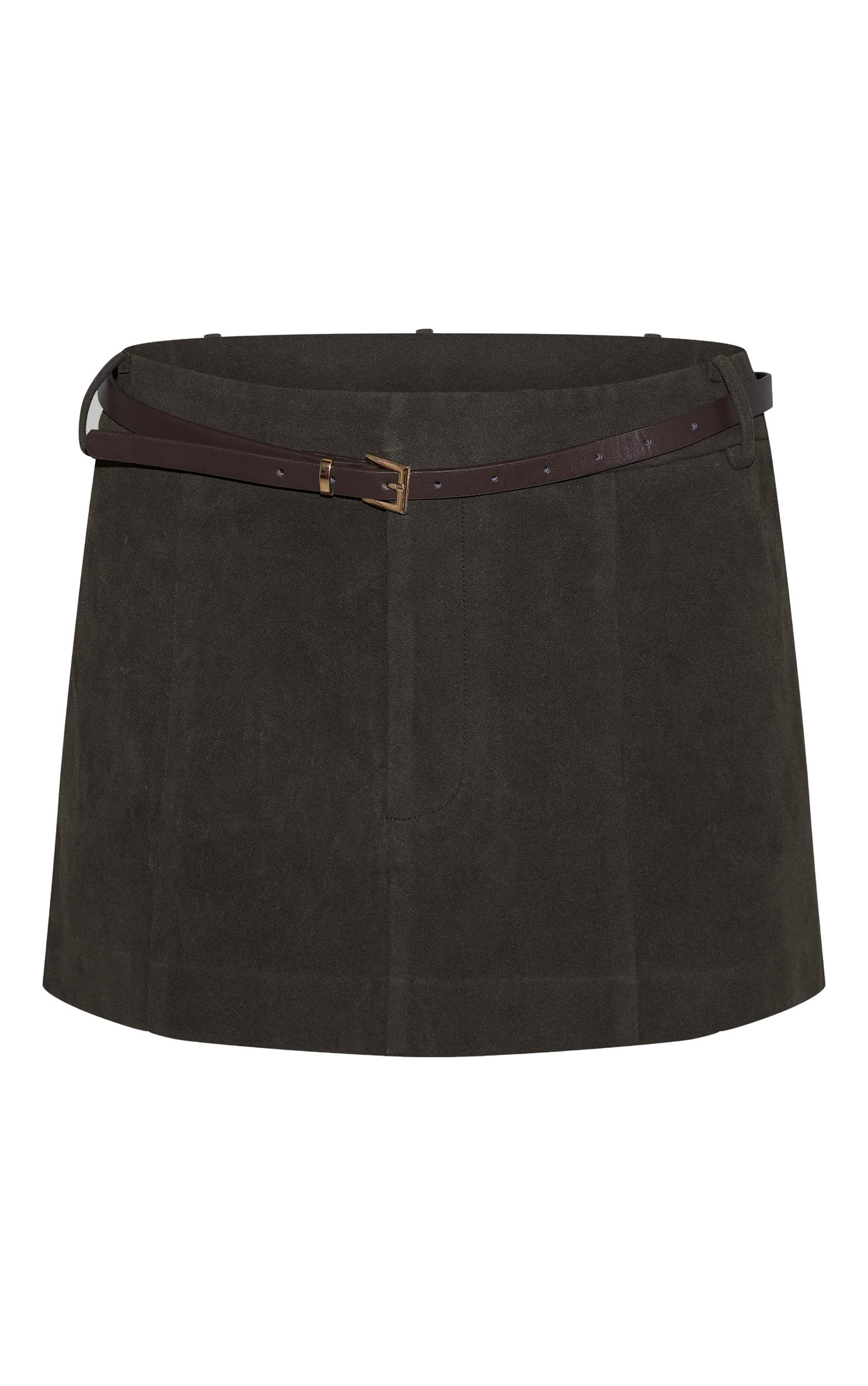 Bring texture into your wardrobe with this chocolate faux suede belt detail pleated skirt. Brought to you in a rich chocolate faux suede material, with a pleat detailing and a subtle belt trim adding definition to your look. Just add a long sleeve jacket, a statement bag and a pair of mule heels to finish off the look we are loving right now.Length approx 33cm/13inch (Based on sample size US 4)Model wears size UK 8/ EU 36/ AUS 8/ US 4Model Height - 5ft 8inchp]:!mb-4inch>Brand: PrettyLittleThingCategory: BottomsProduct type: Mini SkirtColor: ChocolateMaterial: Faux SuedeOccasion: Evening
