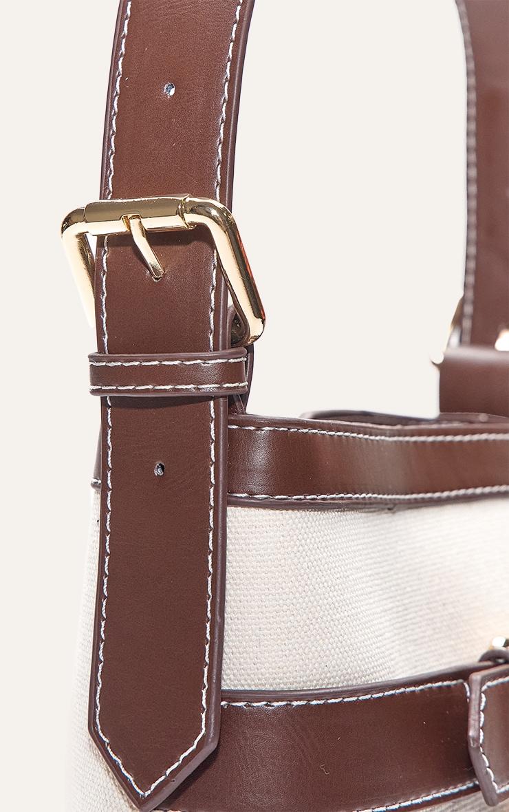 Keep it stylish with the chocolate pu contrast canvas bucket bag. Made from a chocolate pu material with contrasting canvas panels, it features a classic bucket shape, sturdy handle, and spacious interior for everyday use. This versatile accessory brings effortless polish to both casual and smart outfits. Pair with kitten heels and gold earrings for an elevated finish.p]:!mb-4inch>Brand: PrettyLittleThingCategory: AccessoriesProduct type: Shoulder BagColor: BrownMaterial: Faux LeatherOccasion: Day