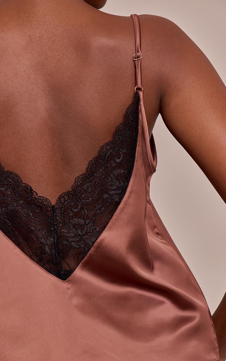 Make an effortless statement as dusk settles. The chocolate satin backless lace trim cami top delivers a confident cut in a rich brown hue, defined by its sleek square neckline and delicate spaghetti straps. Its relaxed drape ensures a sophisticated line that moves with purpose for evening. Pair this artful piece with tailored black pants or a sleek midi skirt, grounding the look with striking gold heels. Finish the ensemble with elegant drop earrings and a slouchy clutch bag for an assured evening aesthetic.Length approx 48.5cm/19inch (Based on sample size US 4)Model wears size UK 8/ EU 36/ AUS 8/ US 4Model Height - 5ft 9inchp]:!mb-4inch>Category: TopsProduct type: Cami TopColor: BrownMaterial: SatinDesign: PlainNeckline: Straight NeckSleeves: SleevelessOccasion: Evening