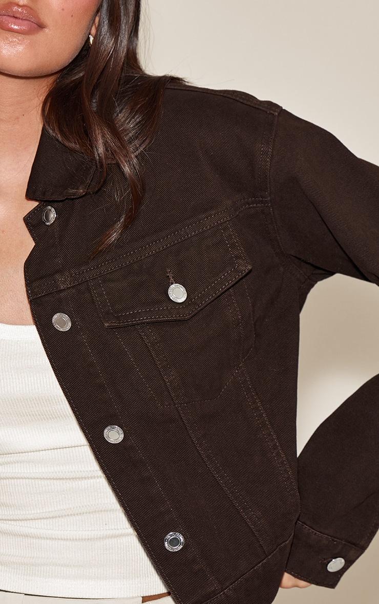 Update your denim collection with the chocolate slim fit denim jacket. Designed in a deep chocolate denim, this jacket features a slim fit cut and classic button-down detailing. Style it over a casual tee with jeans for an elevated everyday look.Length approx 38cm/15inch (Based on sample size US 4)Model wears size UK 8/ EU 36/ AUS 8/ US 4Model Height - 5ft 7inchp]:!mb-4inch>Brand: PrettyLittleThingCategory: DenimProduct type: Denim JacketColor: ChocolateMaterial: Rigid DenimDesign: PlainNeckline: ShirtSleeves: LongOccasion: Day