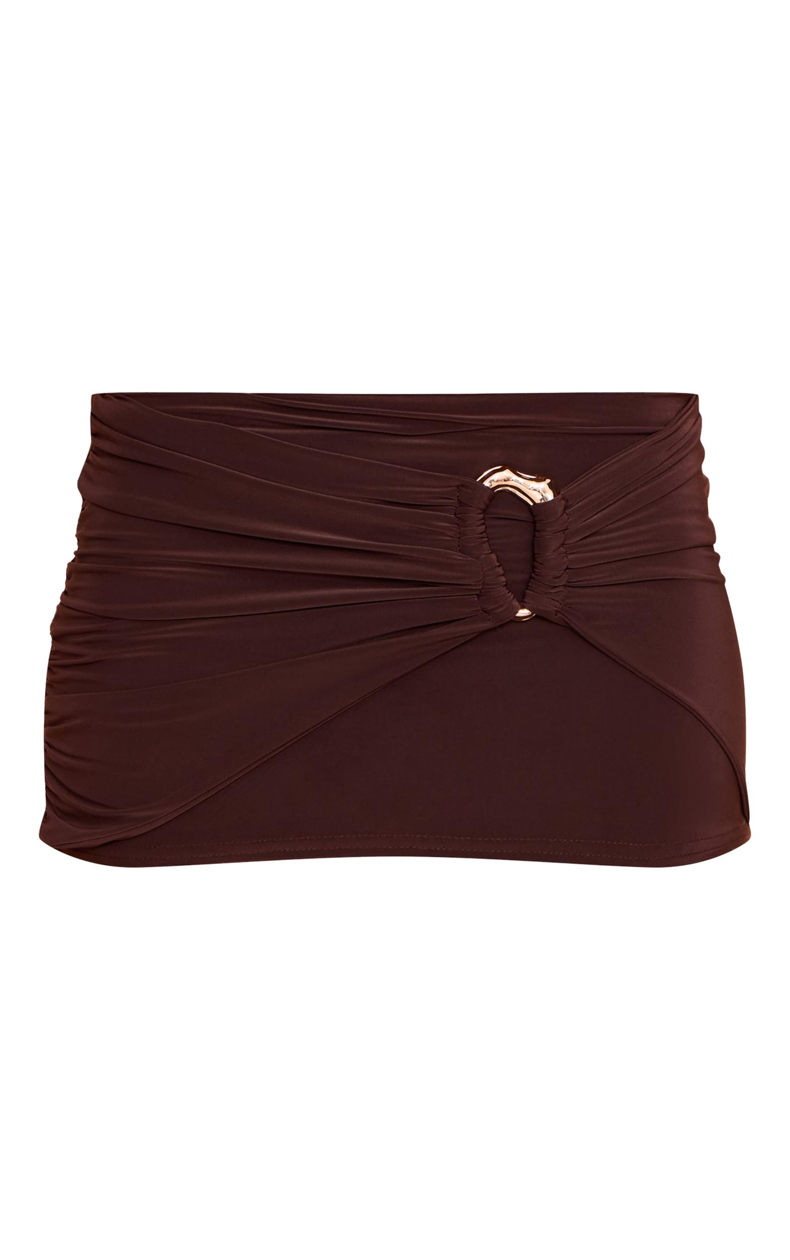 Go bold in the chocolate slinky ring detail low rise micro mini skirt. Designed in a smooth slinky fabric, the low-rise fit is accented with metal ring hardware for added edge. Pair with a chic top and heels for a sophisticated night-out look.Length approx 33cm/13inch (Based on sample size US 4)Model wears size UK 8/ EU 36/ AUS 8/ US 4Model Height - 5ft 9inchp]:!mb-4inch>Category: BottomsProduct type: Mini SkirtColor: ChocolateMaterial: Slinky JerseyDesign: PlainOccasion: Evening