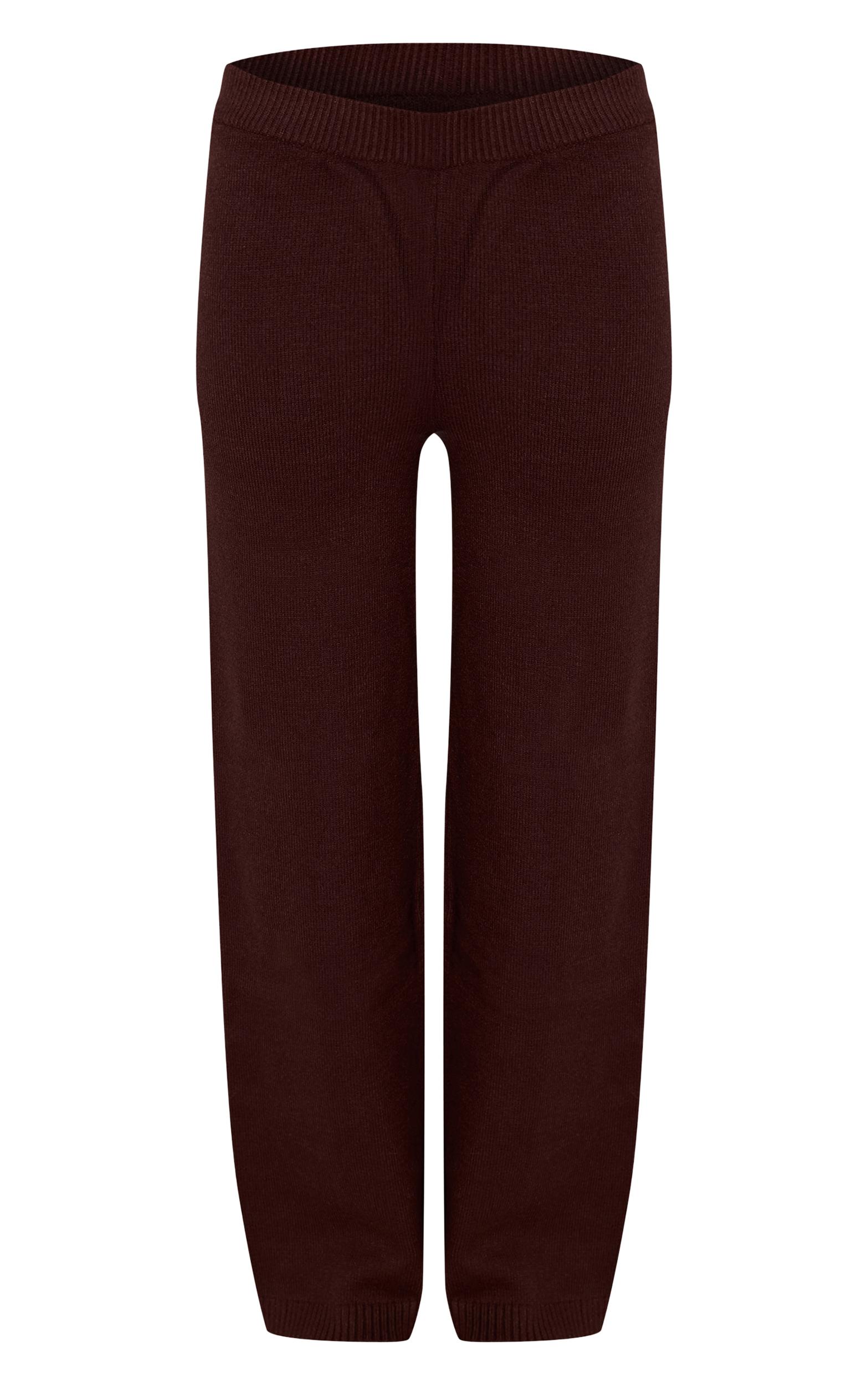 Keep it cosy and chic with the chocolate wide leg knit pant. Crafted from soft knit fabric in a rich chocolate hue, these wide-leg pants feature a comfortable fit and timeless design. Style with a coordinating knit top and sneakers for a relaxed yet elevated off-duty look.Length approx 76cm/30inch (Based on sample size S)Model wears size SModel Height - 5ft 7inchp]:!mb-4inch>Brand: PrettyLittleThingCategory: KnitwearProduct type: TrousersColor: ChocolateMaterial: KnitOccasion: Day