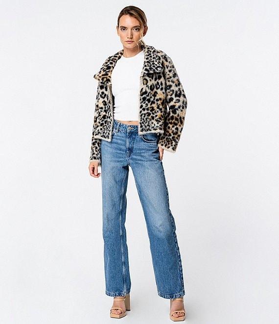 CIEBON Bruna Animal Print Faux Fur Collared Long Sleeve Fuzzy Sweater Cardigan