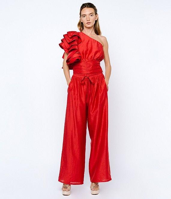 From CIEBON, this top features: Tencel linen fabrication One-shoulder neckline Multi tiered ruffle sleeve Side zipper closure Ruched waistline detail High hip length Approx. 18.75" length Lyocell/nylon/linen Hand wash Imported.