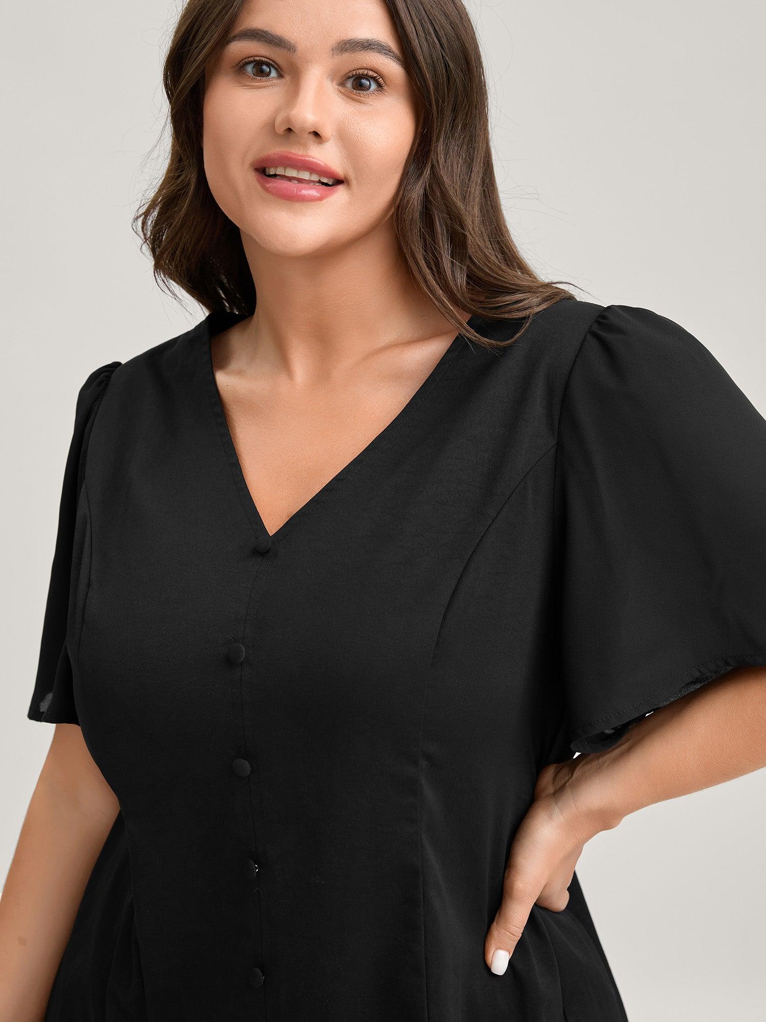 Cinched Flared Waist Button Detail Blouse Female