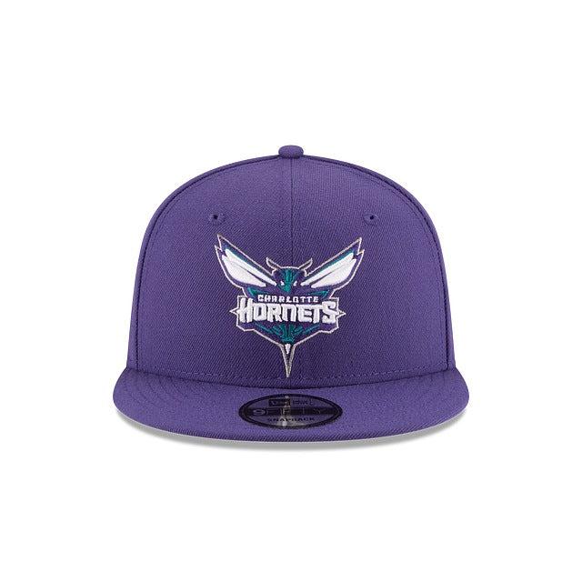 The Charlotte Hornets Basic 9FIFTY Snapback features an embroidered Hornets logo at the front panels with a team color NBA logo above the snapback closure at the rear.