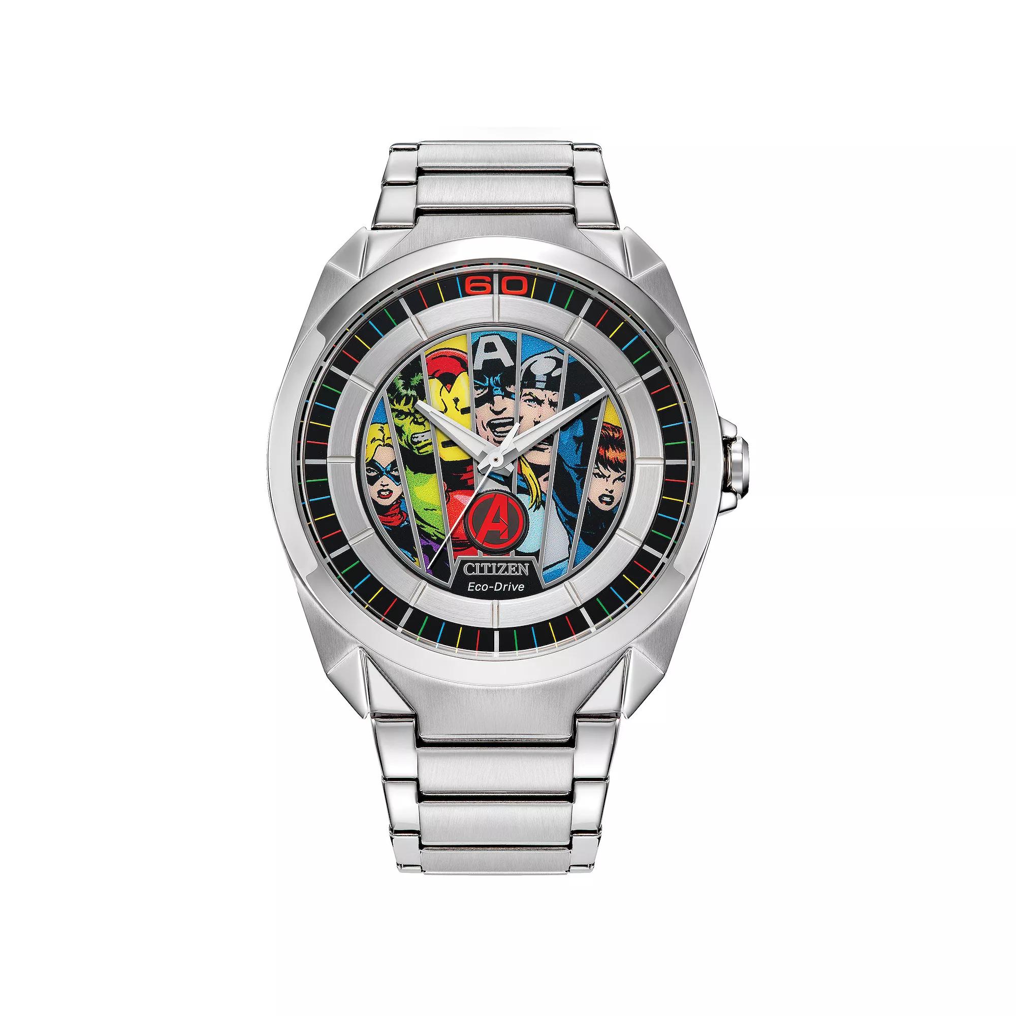 Citizen's Classic Avengers watch highlights six decades of incredible adventures. This timepiece comes as part of a limited-edition box set with two pins. Powered by Eco-Drive, harnessing both natural and artificial light, never needing a battery. Style #AW2080-64W