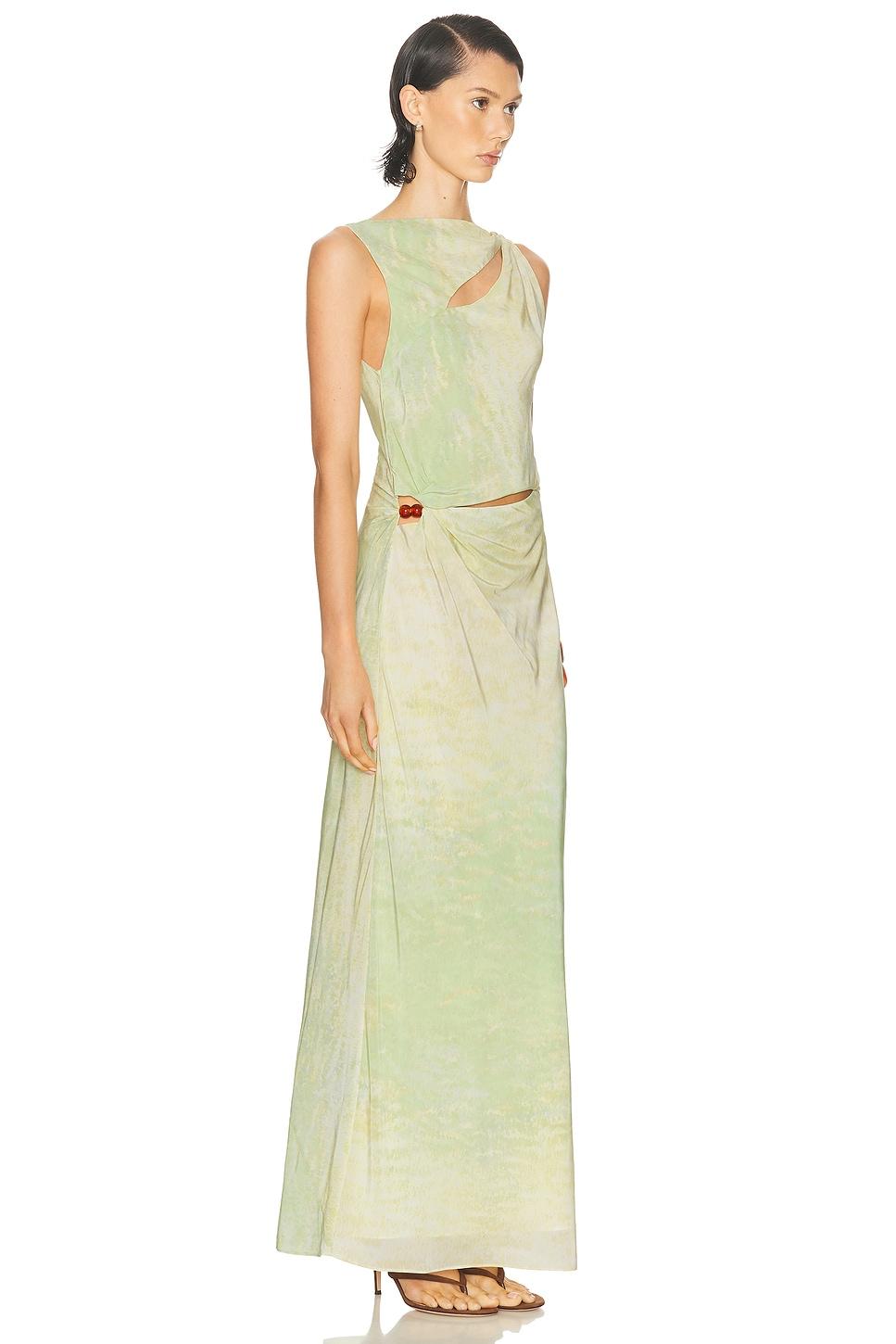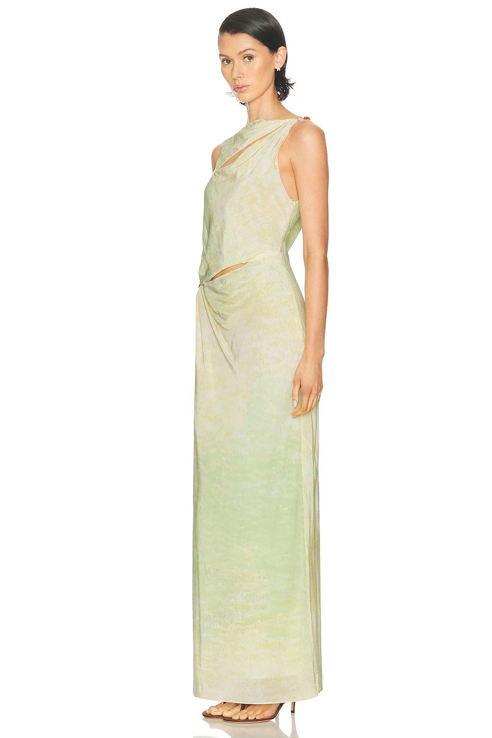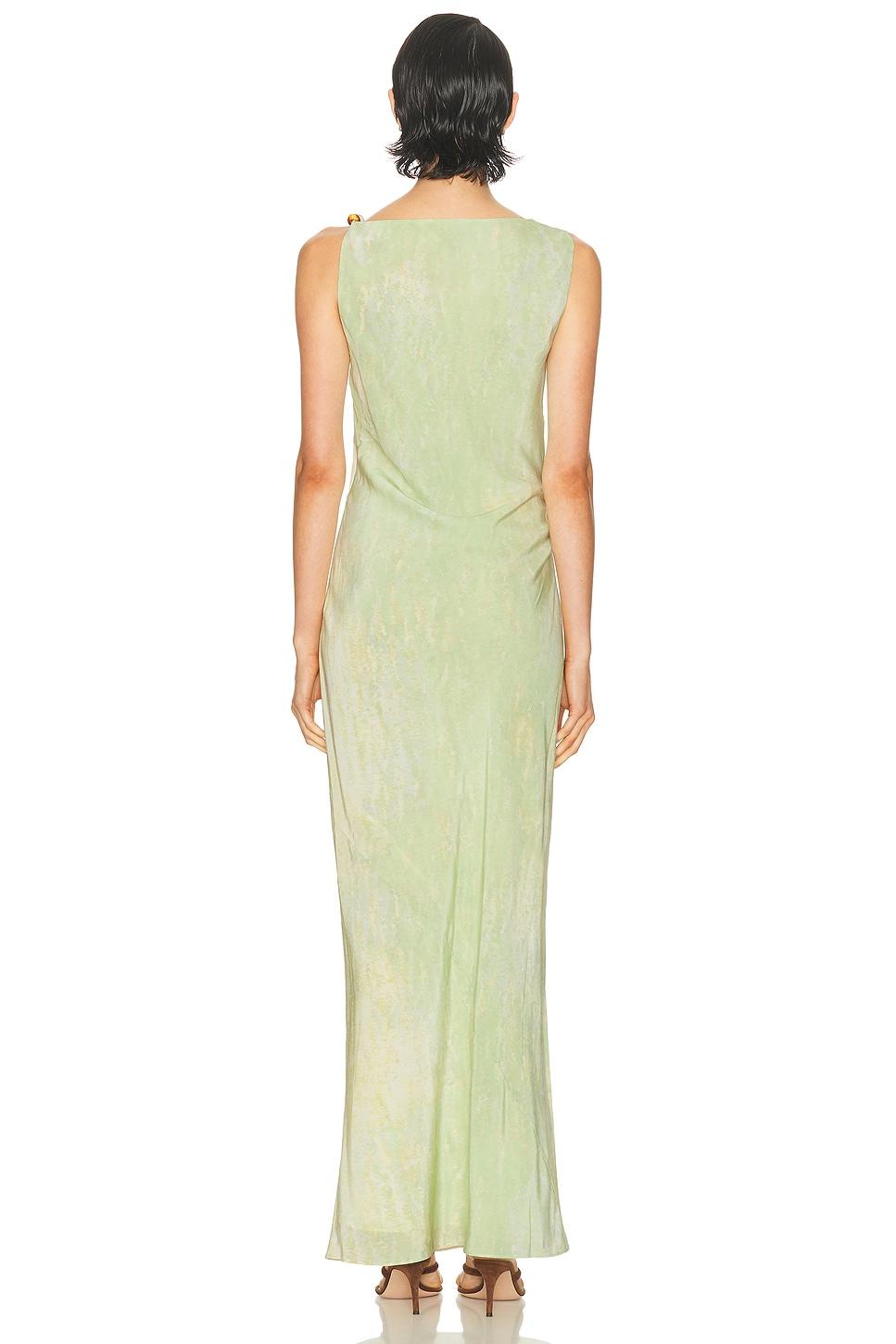 dressSelf: 30% silk, 70% viscoseLining: 100% polyesterBead: resin / Made in China / Dry clean / Fully lined / Hidden side zipper closure / Satin textile / Draped cut out design / Decorative beads at shoulder and waist / Our Style No. SIF-WD203 / Manufacturer Style No. SIR325-1021 / Model is wearing size 1 / S.