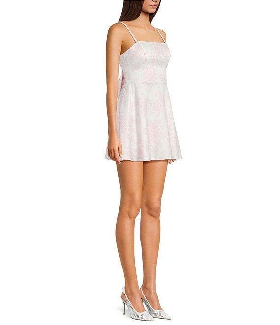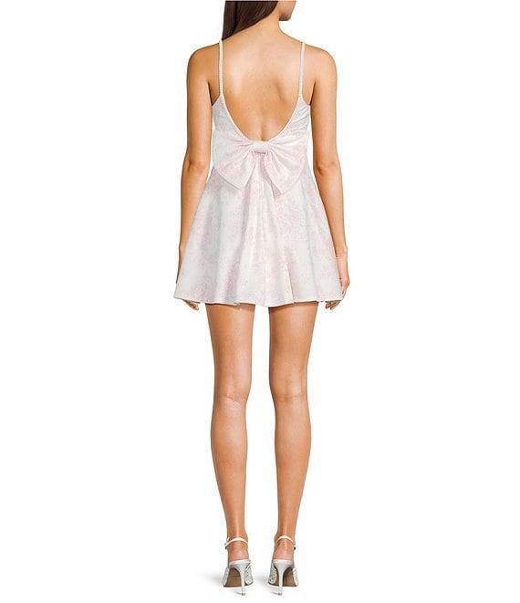 City Vibe Floral Printed Straight Neck Trim Bow Back Skater Dress