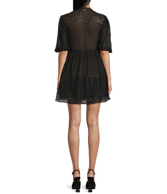 City Vibe Long Sleeve Lace-Glitter Square Neck Lace-Up Back Dress