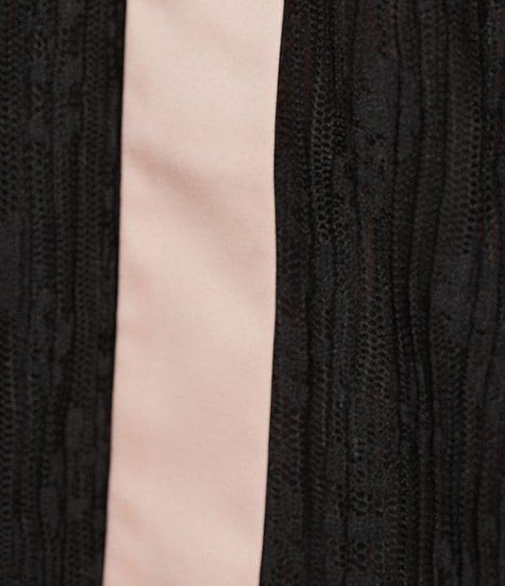 From City Vibe, this dress features: Lace fabric Ruffled V-neckline Elbow-length sleeves Contrasting bow detail on the front Pullover styling 33.5" center-back length Polyester; lined Dry clean Imported.