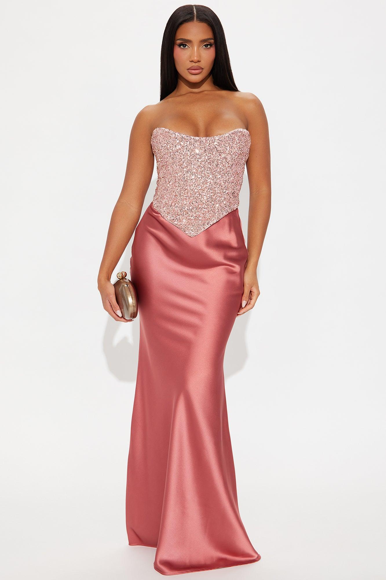Available In Pink. Sequin Corset Back Zip Sweetheart Neckline Non Stretch Self: 95% Polyester 5% Spandex Lining: 92% Polyester 8% Spandex Contrast: 100% Polyester Imported California Proposition 65WARNING: Cancer and Reproductive Harm - www.P65Warnings.ca.gov.