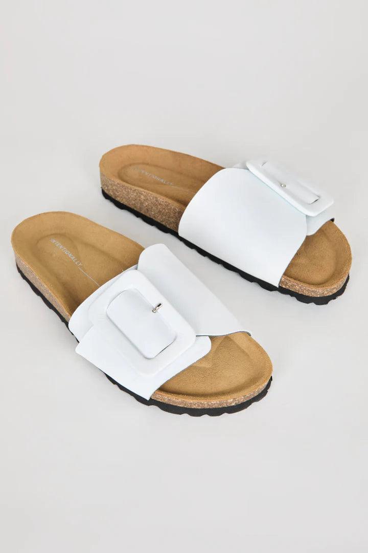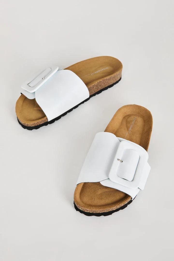 MEET CLARICEKeep it minimal with this summer slide. Made in Spain, this simple foot-bed slide is made fresh with a nod-to-mod with the detail of this oversized buckle. Slip on and go forward with style without compromising comfort