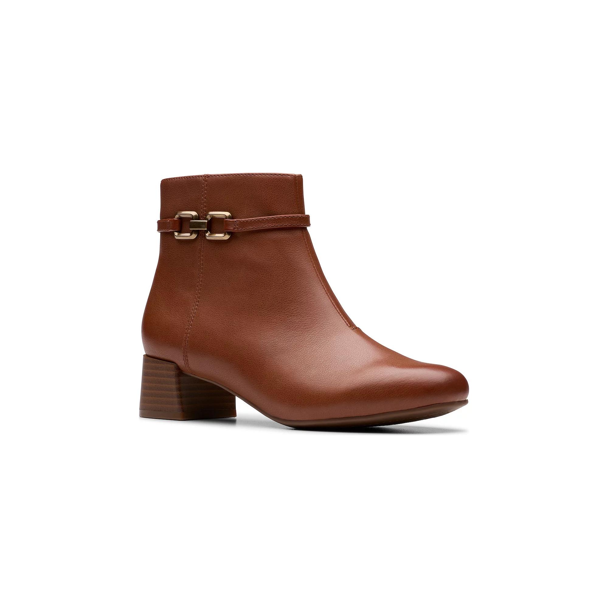 Discover a blend of style and comfort with Clarks' latest wedge ankle boots. Designed to effortlessly shift from casual outings to elegant evening events, these boots feature an easy-walk block heel and a cushioned footbed that provides support and breathability, making them your go-to choice for all-day wear. Click this FOOTWEAR GUIDE to find the perfect fit and more! - https://www.kohls.com/feature/shoesizeguide.jsp. FEATURES: Easy-walk block heel for day-to-night versatility, Ultimate Comfort PU foam footbed for all-day support, Breathable microfibre footbed lining for added comfort, Flexible TPR sole for superior traction, Ankle shaft detail. DETAILS: Leather upper, Textile lining, TPR outsole, Almond toe, Zipper closure, Foam footbed, Multi-directional outsole, Heel height: 1.77 inches, Shaft height: 4.53 inches, Shaft circumference: 9.45 inches, Spot clean, Imported. Size: 9 Wide. Color: Dark Leather. Gender: female. Age Group: adult.