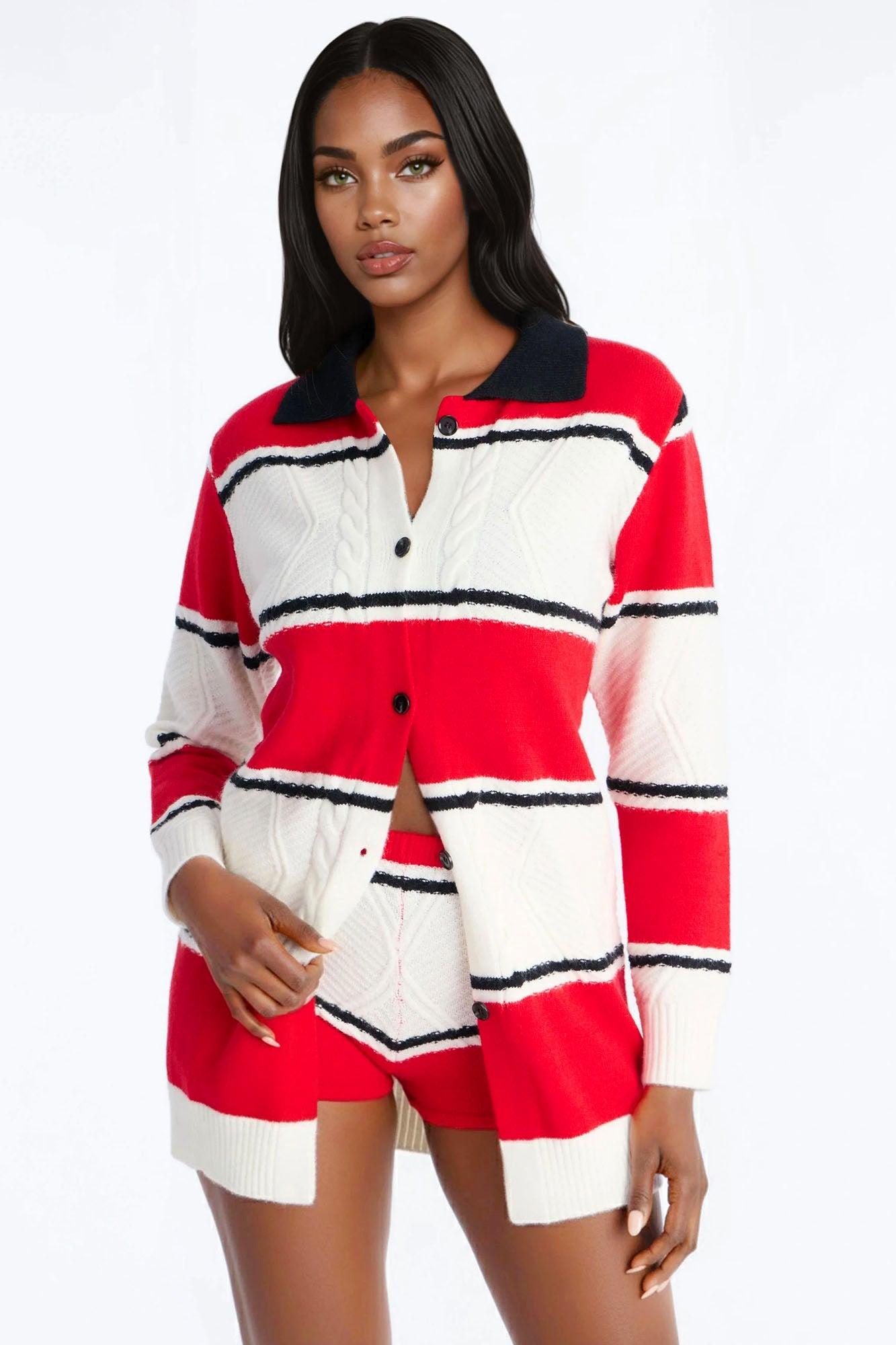 Class Act Striped Sweater Short Set - Red/combo Female