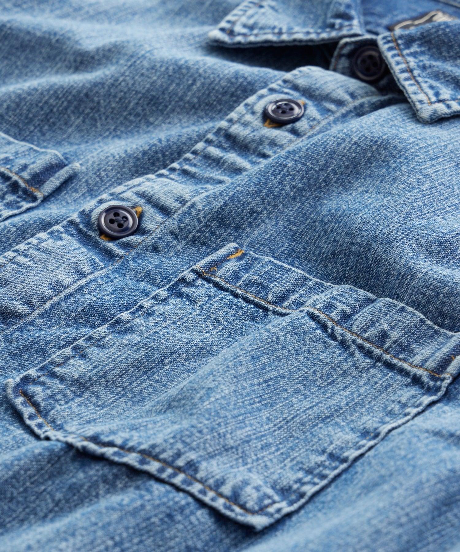 An essential update to the classic denim shirt reinvented in Italian denim that wears well on its own or worn open over a tee or long-sleeve crew. Crafted with a relaxed fit, this tough, stone-washed denim shirt jacket will easily become a go-to transitional piece for all your outdoor pursuits. 100% Cotton Classic Fit Classic Workwear Styling Chest Pockets Fabric from Italy Made in Portugal Machine Wash Cold, Hang Dry Style SH883010