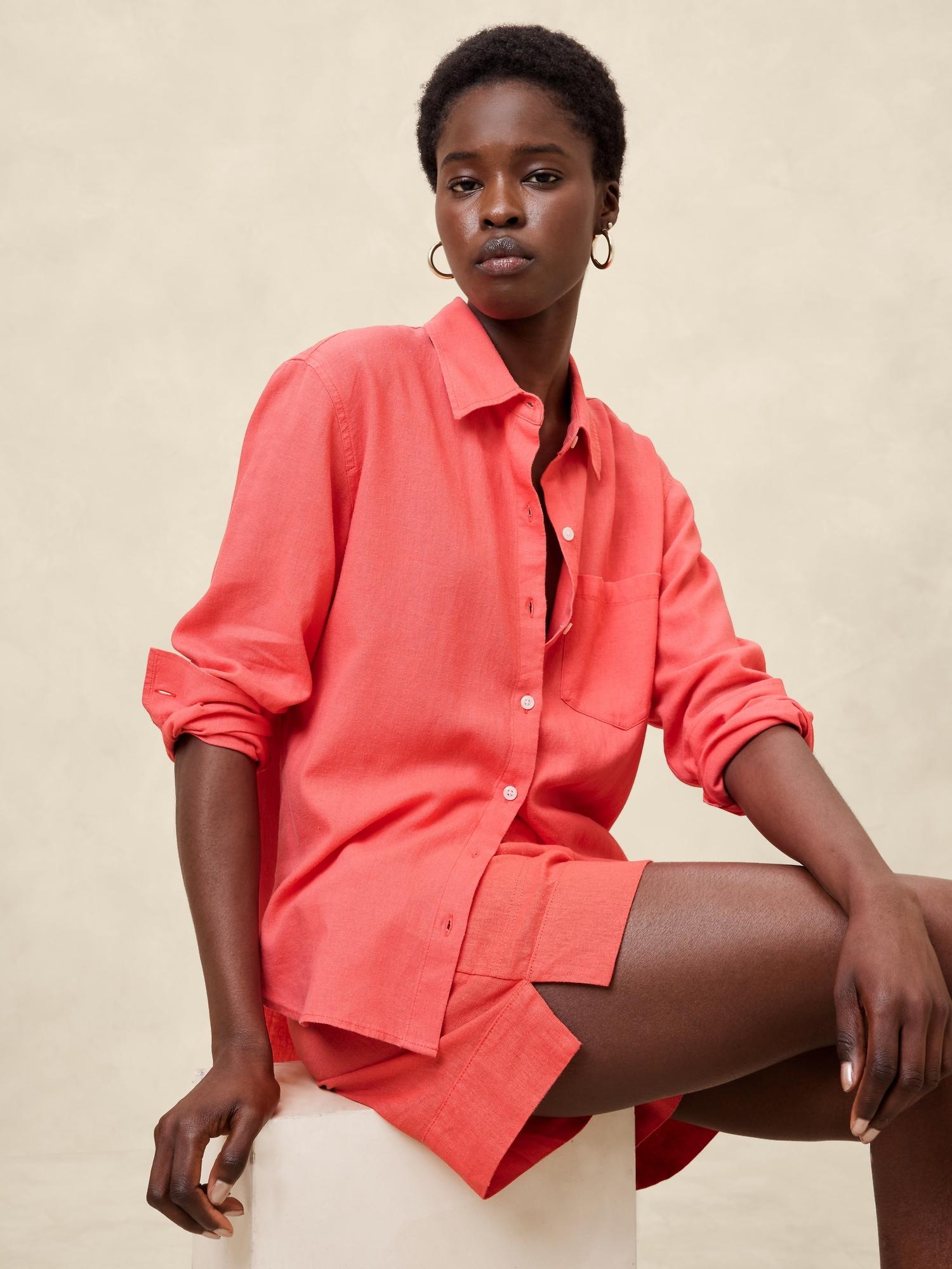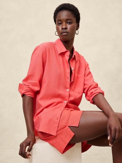 Introducing our Classic Silky Shirt, designed with an easy body for effortless style and comfort. Point collar. Long sleeves with buttoned cuffs. Drop shoulders. Button front closure. Chest pocket. Back yoke with box pleat. Shirttail hem. Made exclusively for Banana Republic Factory. #596277