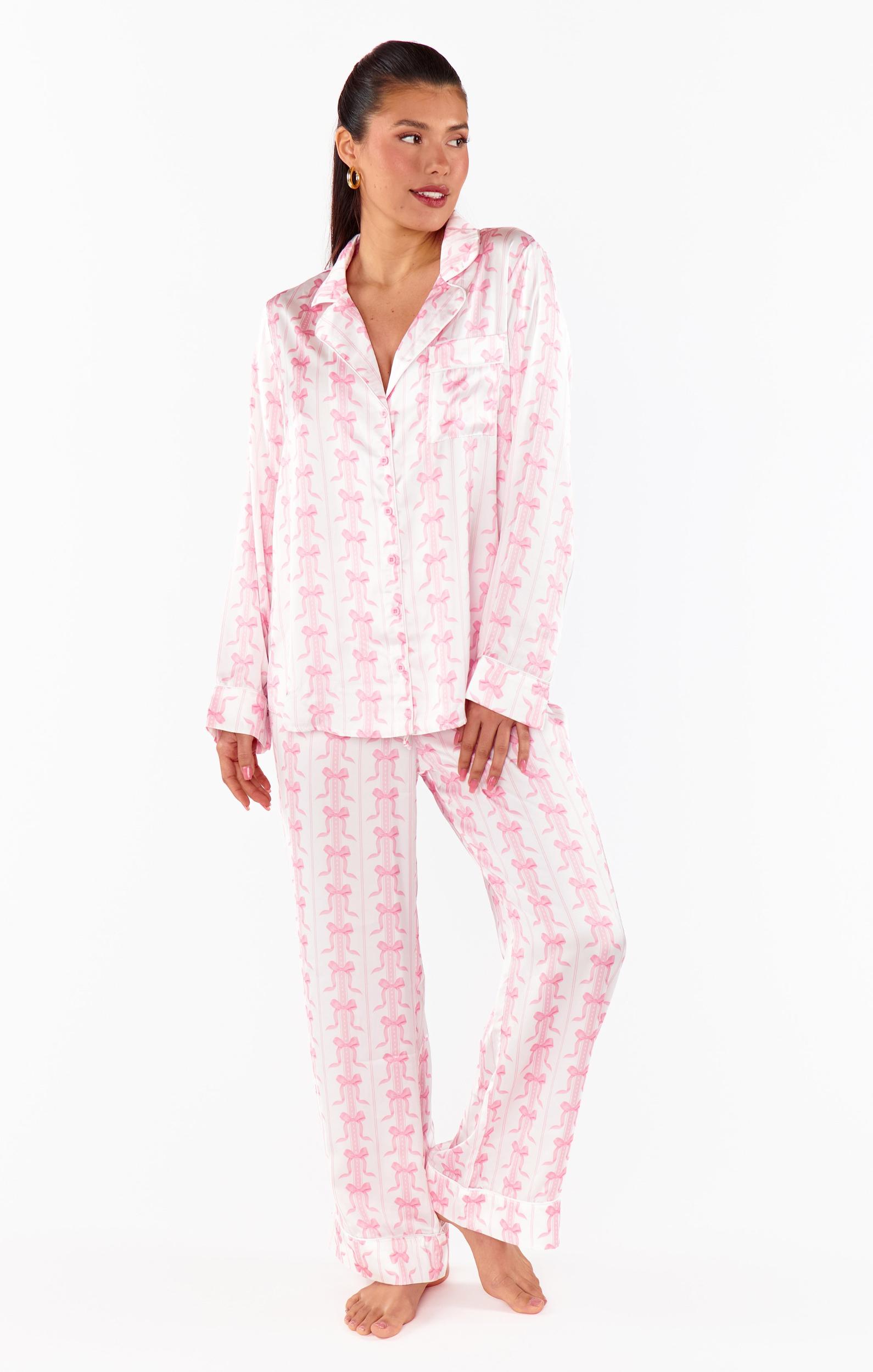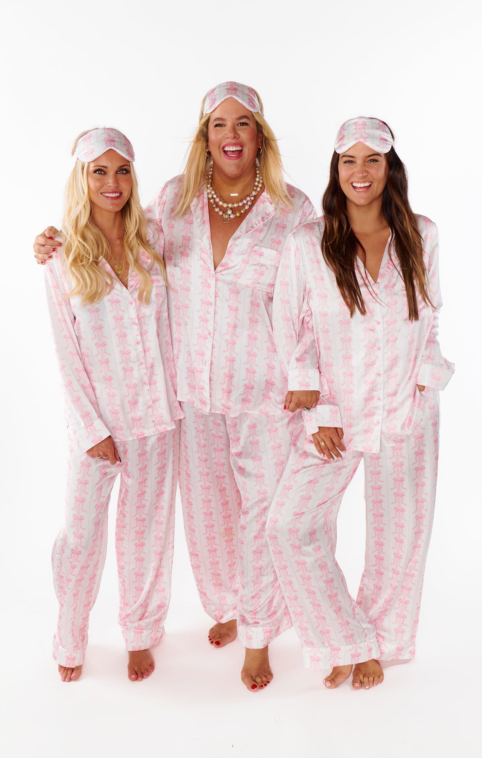 Time to check in! We’re excited to introduce our latest collection, inspired by the magic of the Plaza Hotel and created in collaboration with the wonderful Sabrina Chazen! This dreamy line features playful bows and delightful pink hues, perfect for channeling your inner Eloise. Whether you’re off to afternoon tea or looking to add a touch of charm to your everyday adventures, this collection is all about you and your mini embracing all things fun and fabulous! Sleep tight in these super silky button down pajamas! Sold as a set, these bow printed pjs have a drawstring and elastic waist. Sleep mask is a free gift for the first 100 purchasers! Also available for purchase.