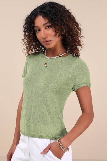 Upgraded style is easy to achieve when you've got pieces like the Lulus Clean Aesthetic Green Short Sleeve Sweater Top! Lightweight knit fabric shapes this versatile top that has a subtle boat neckline framed by classic short sleeves. Relaxed-fit bodice finishes with ribbed knit at the hem, neckline, and cuffs.