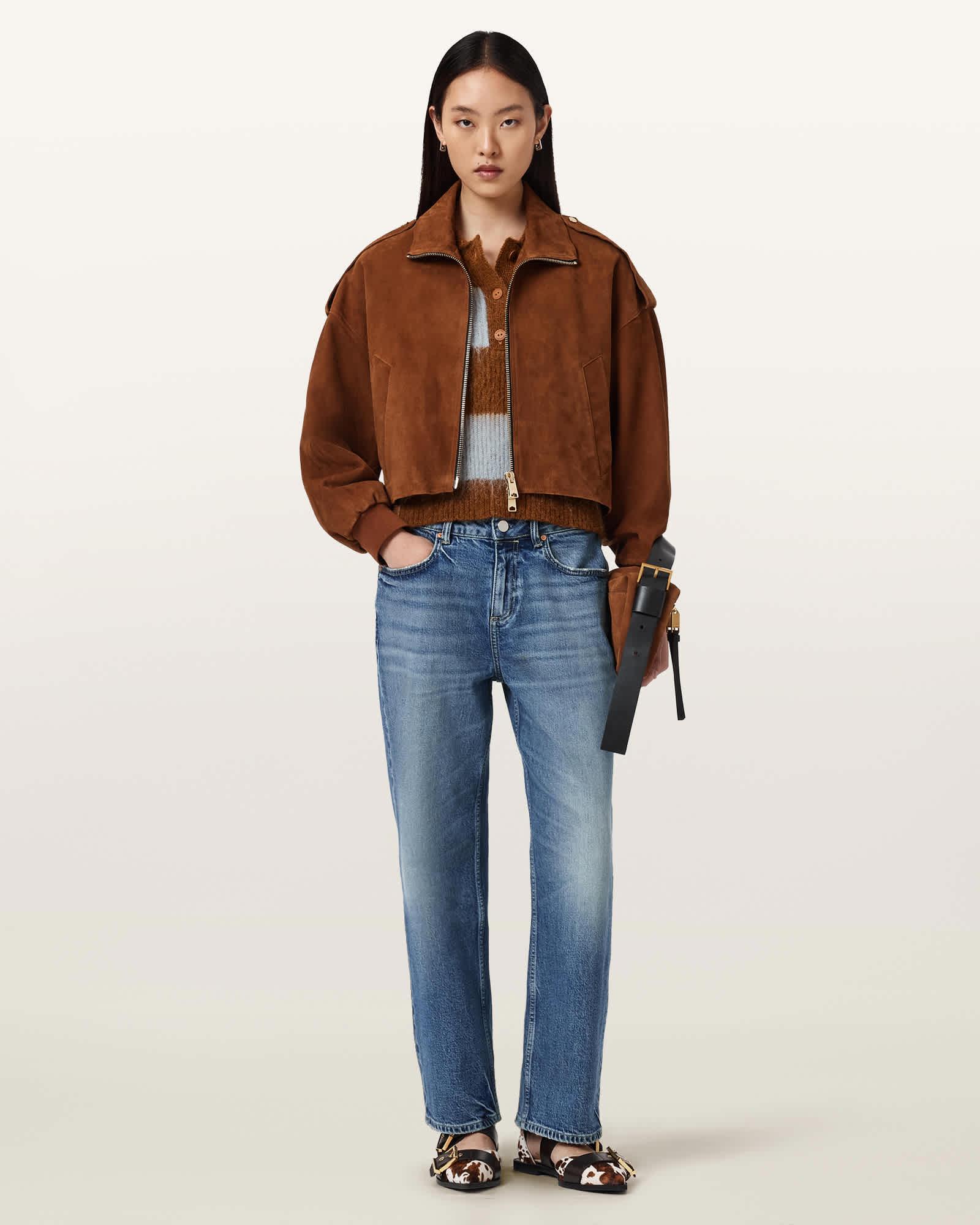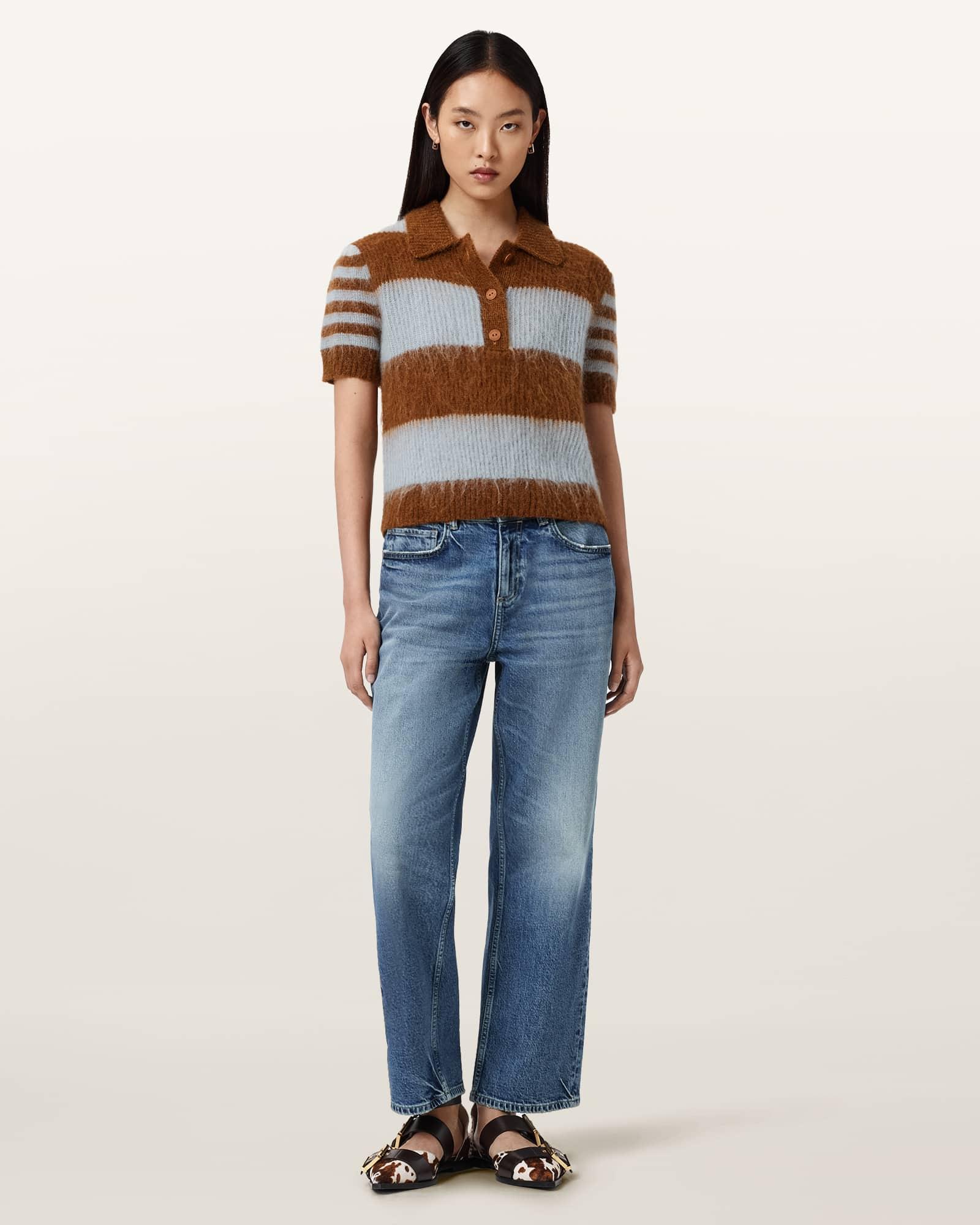 Clem Wool Blend Polo STEEL BLUE/COGNAC | ALLSAINTS US