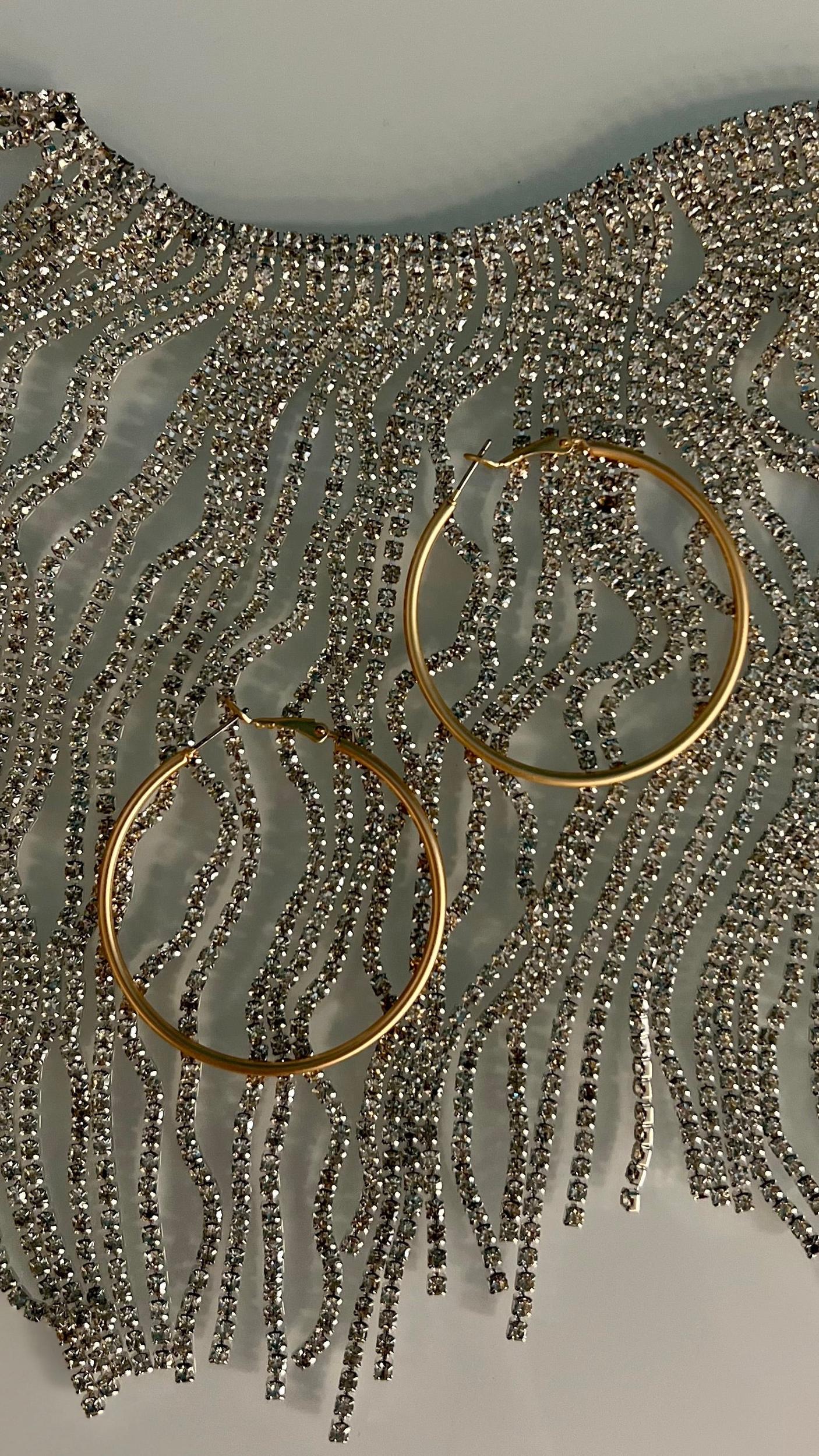 Our Cleopatra Gold Hoops earrings are sure to make a bold statement! These 50mm, gold matte hoops will give your look a sophisticated and chic vibe thanks to the timeless style of the hoop! Perfect to make any outfit pop like royalty, you'll be making heads turn with these bad boys! 1 3/4" in diameter