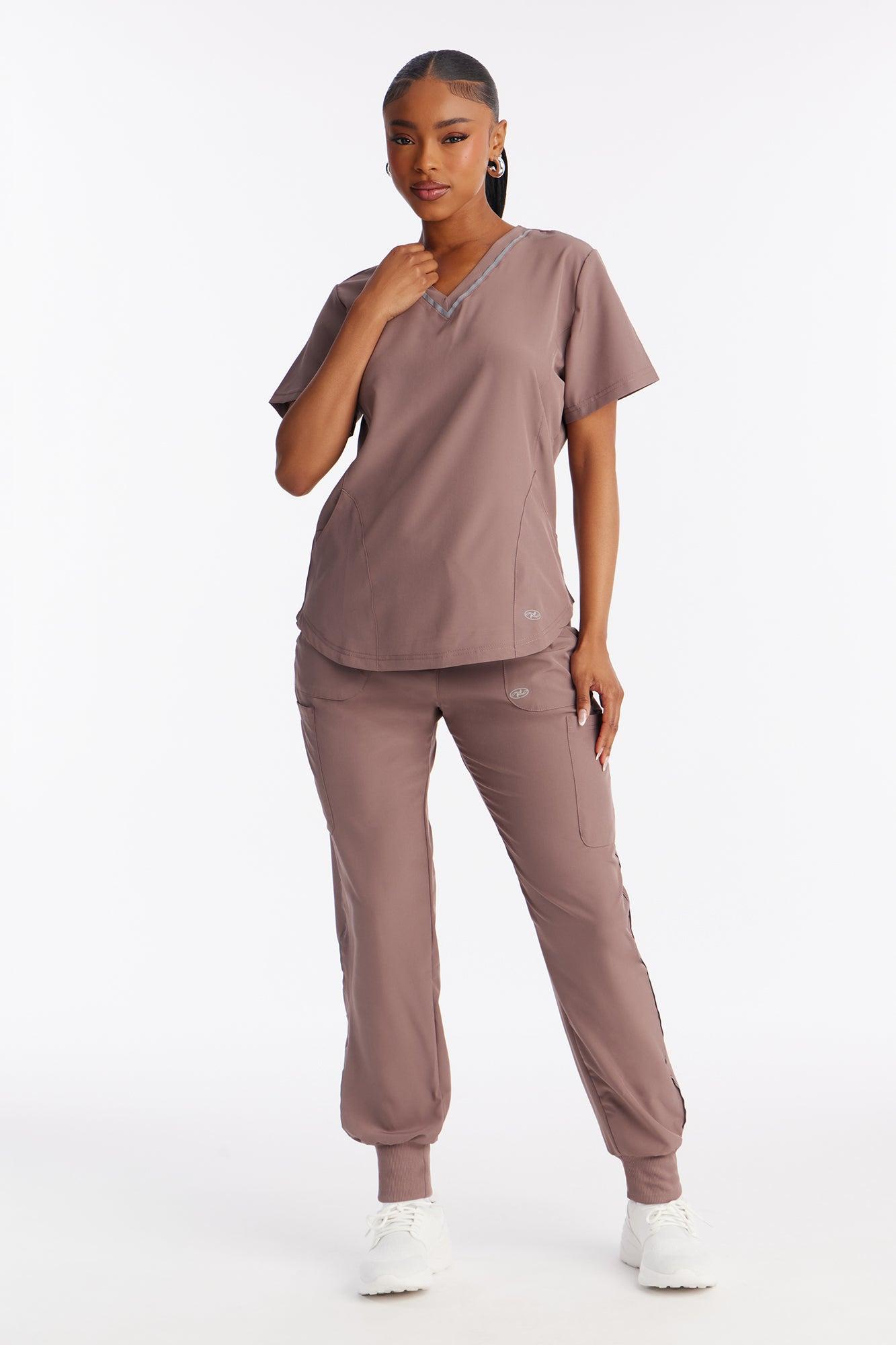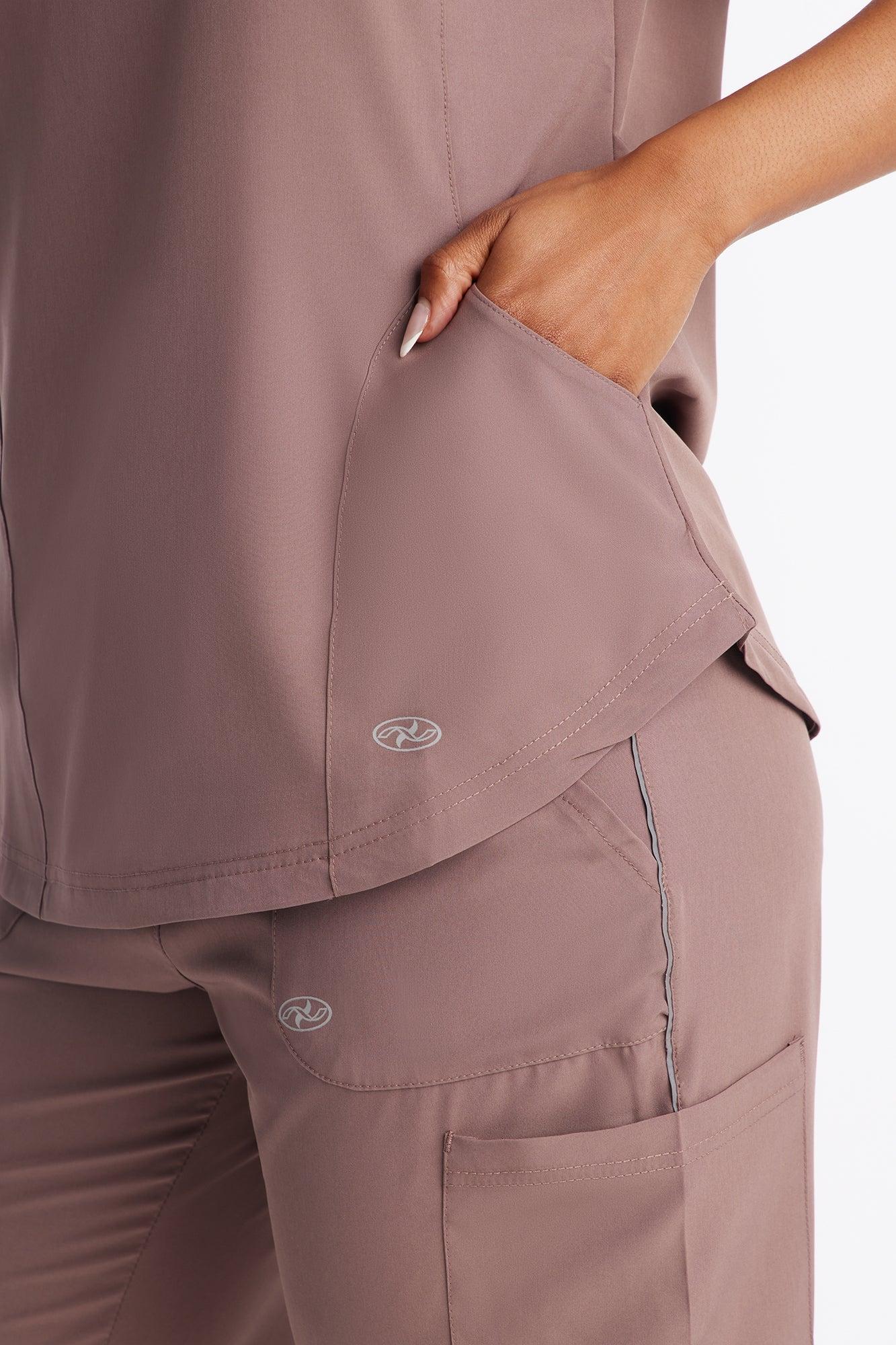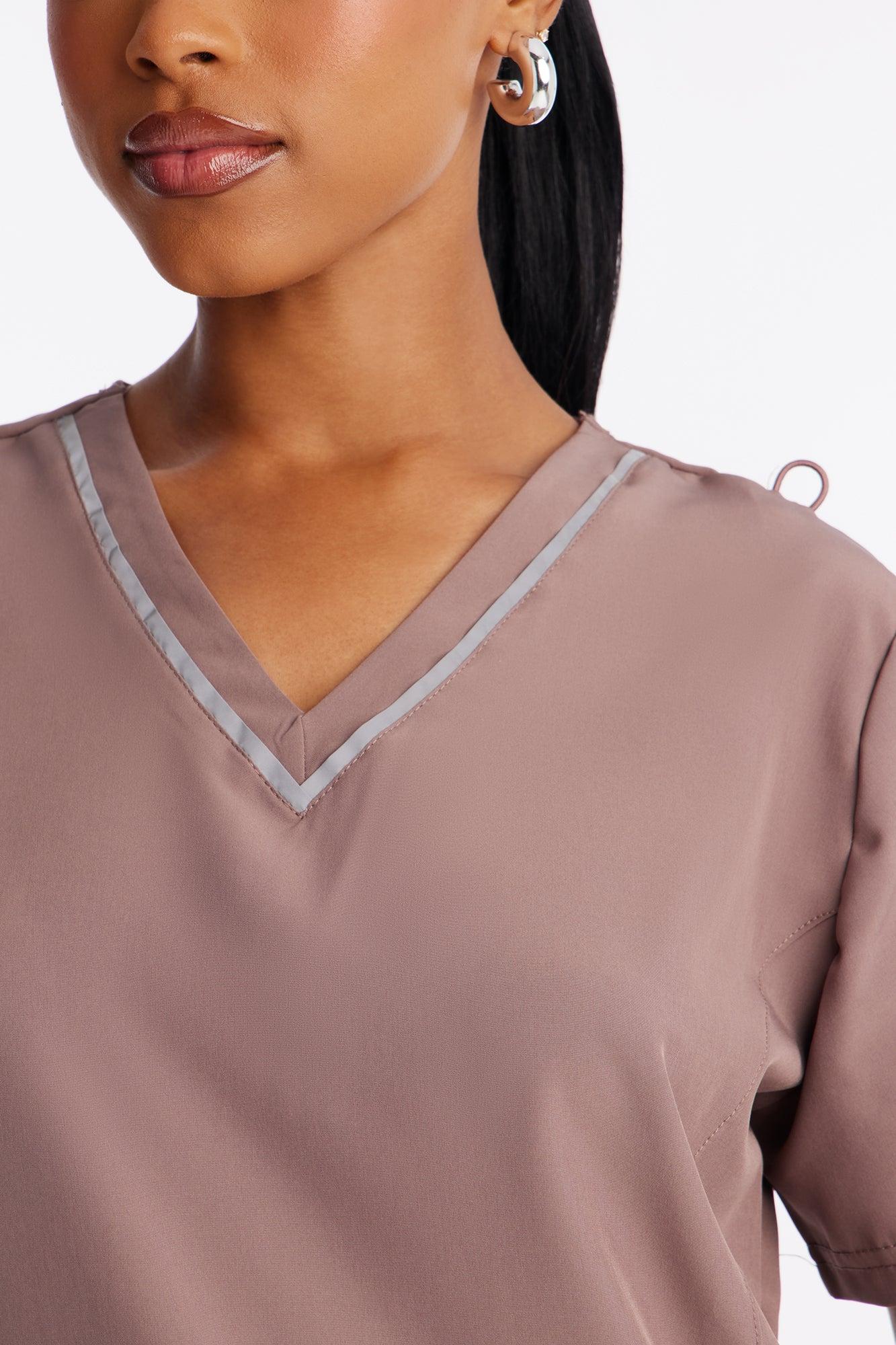 Clinic Classic Stretch Tuck-In V Neck Bungee Scrub Top - Taupe Female