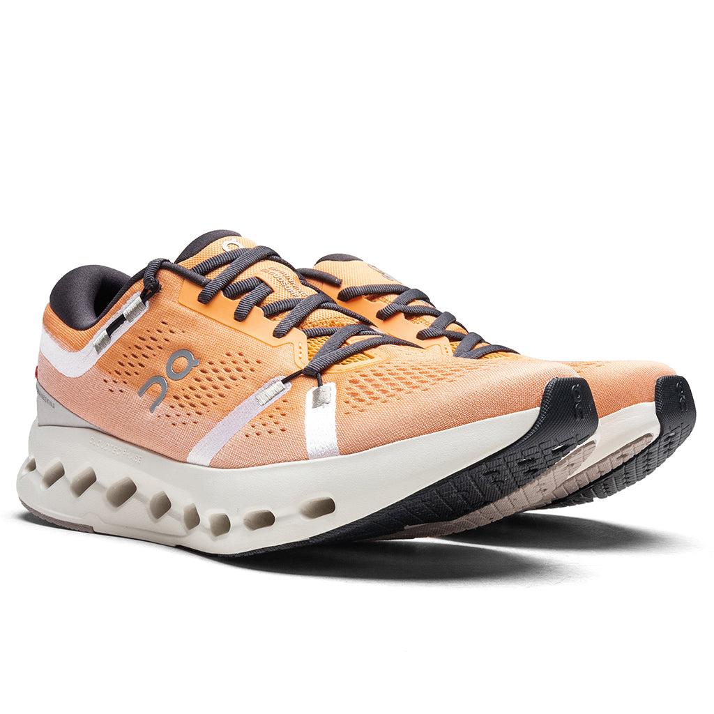 The Cloudsurfer 2 from On uses Finite Element Analysis (FEA) to optimise the midsole's geometry, creating a light and durable shoe with buttery-smooth transitions underfoot. This silhouette has a more durable outsole with thicker padding and smaller cavities in the tread. Built to last, this updated geometry supports an even smoother ride. The re-engineered upper features a more breathable mesh construction. The innovative CloudTec Phase® midsole ensures soft landing and smooth heel transitions. On's signature Helion™ Superfoam provides extra support. Breathable mesh upper Embroidered eyelets CloudTec Phase® cushioning Helion™ superfoam midsole Rubber outsole Weight: 261g All sizes are listed in US Men's sizing unless stated otherwise Style No: 3MF10123126