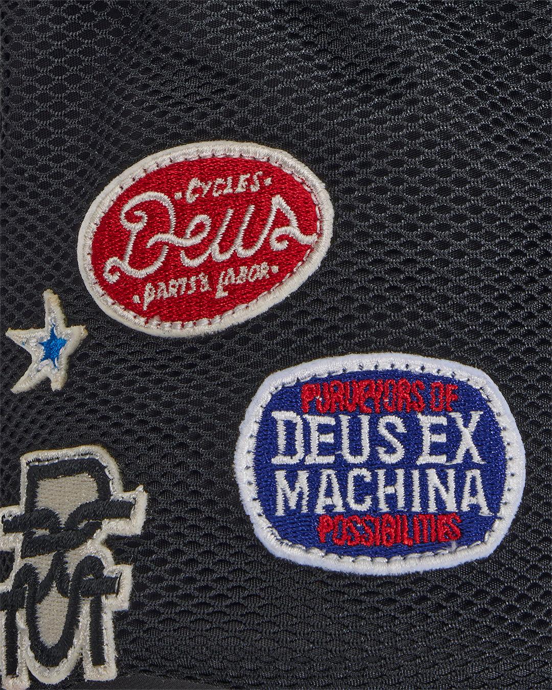 Mesh front phone pocket with embroidered Deus Ex Machina badges
