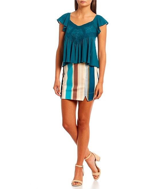 Coco + Jaimeson Striped Ponte Knit Double Slit Mini Skirt