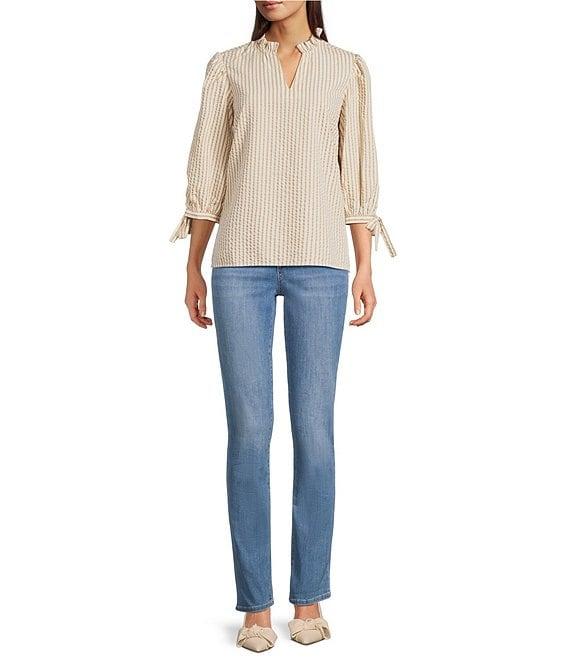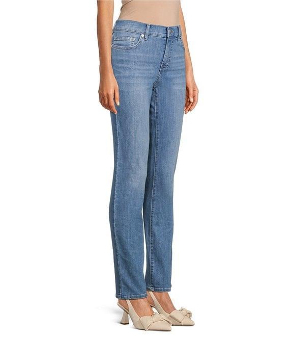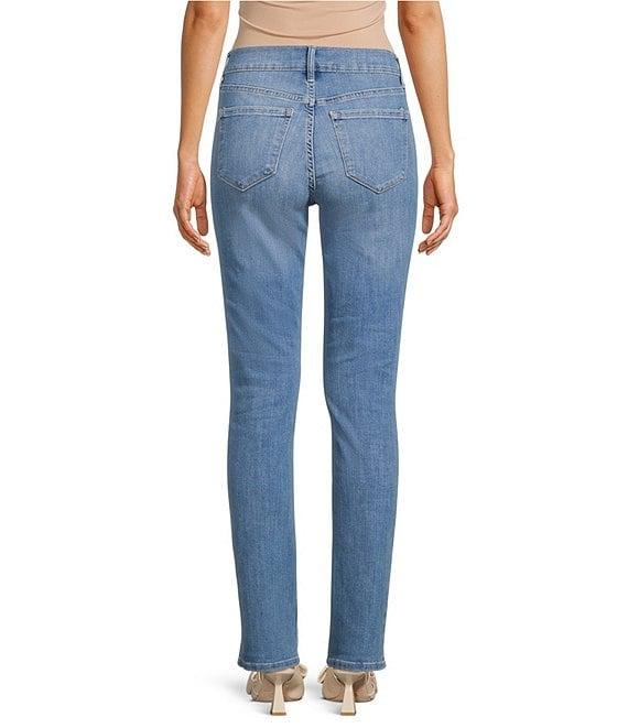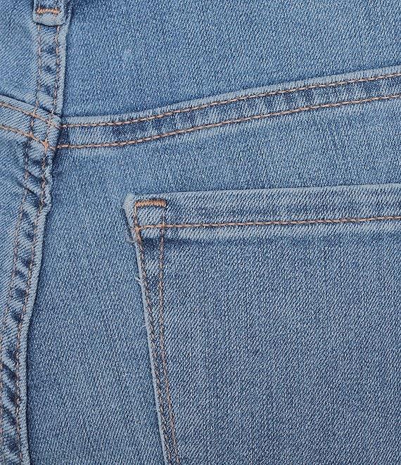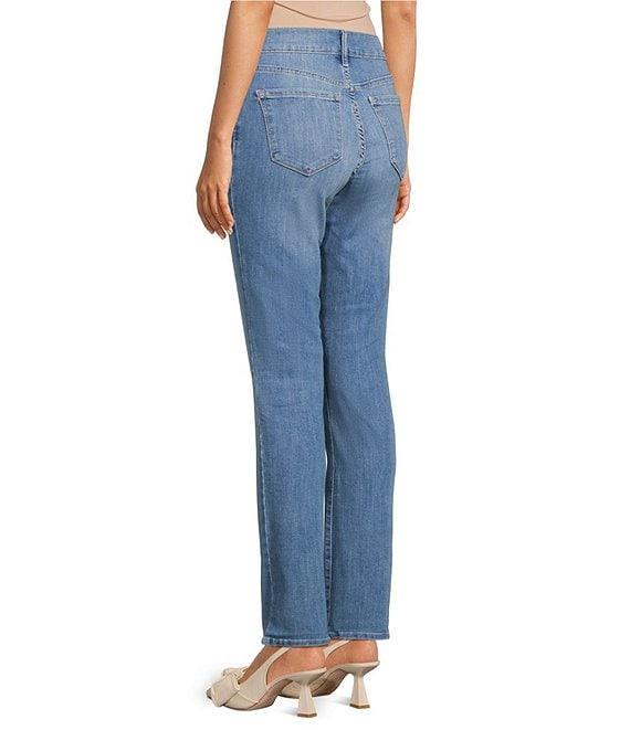 From Code Bleu, thee jeans feature: Stretch denim fabrication High rise Straight leg 5-pocket style Belt loops Clean hem Button/zip fly closure Front button and zipper closure Approx. 32" inseam, 14.5" leg opening, front rise:10.5", back rise: 15.75" Cotton/polyester/viscose/spandex Machine wash Imported.