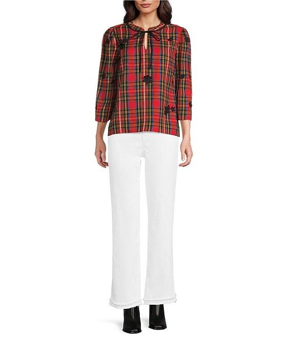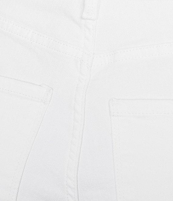 From Code Bleu Petite, these jeans feature: Stretch denim fabrication Straight leg High rise Belt loops 5-pocket style Ankle length Double frayed hem Button/zip fly closure Approx. 25" inseam Cotton/polyester/viscose/spandex Machine wash Imported.