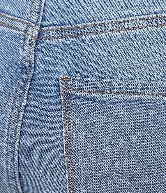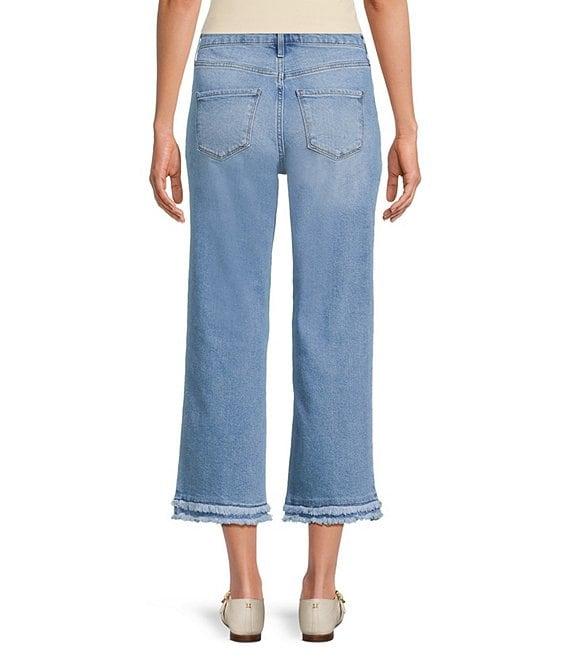 Code Bleu Petite Size Stretch Denim Straight Leg High Rise Double Fray Hem Jeans