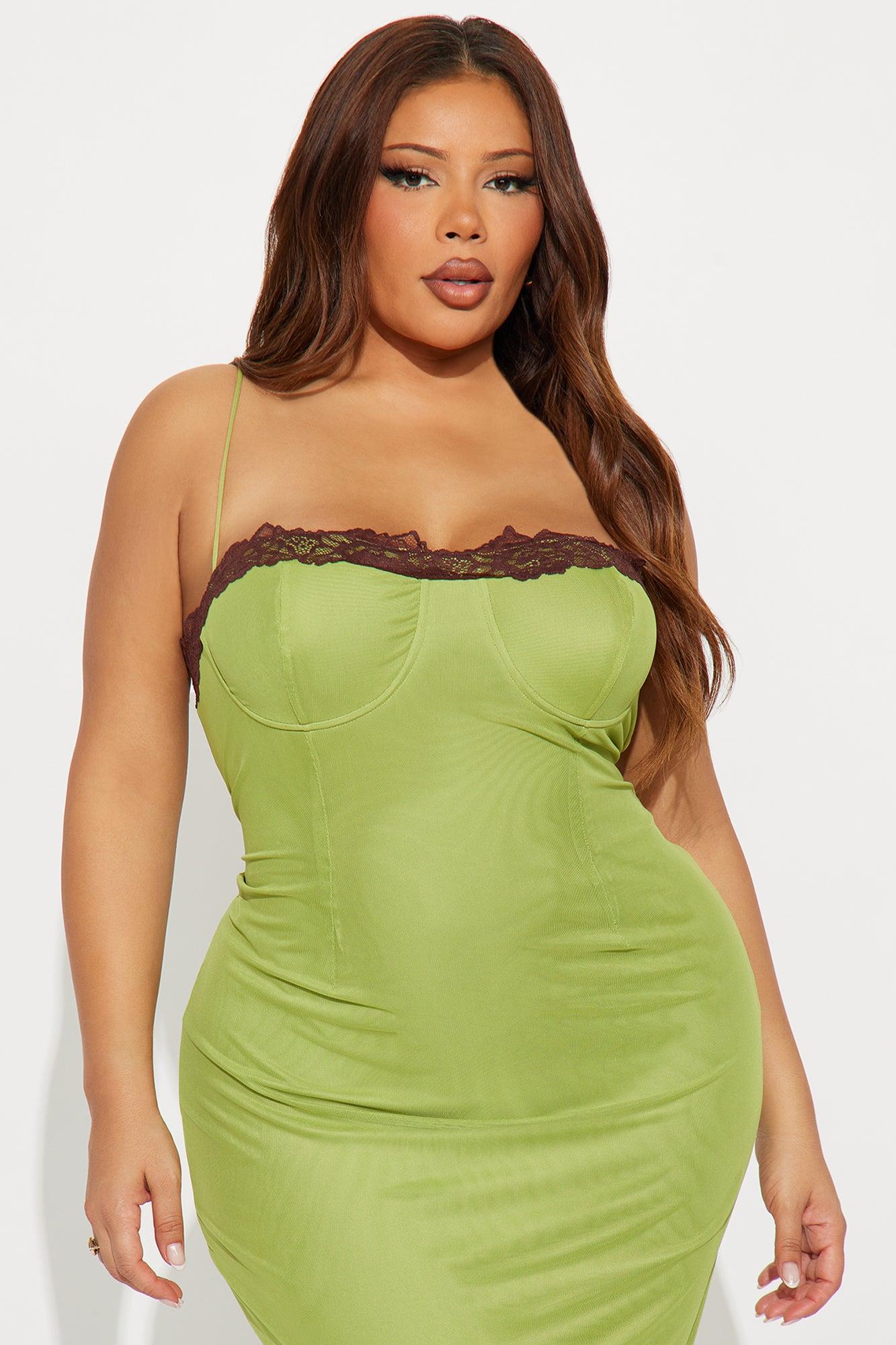 Available In Cream/combo, Olive And Plum. Mesh Maxi Dress Adjustable Spaghetti Straps Sweetheart Neckline Lace Trim Bra Cups w/ Underwire Lace Up Back Back Slit Hidden Side Zipper Stretch Lined Self : 95% Polyester 5% Spandex Lining : 100% Polyester Imported