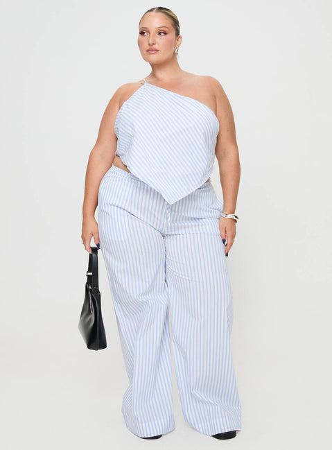 Princess Polly Curve One shoulder striped top Adjustable shoulder straps, tie fastening at back, pointed hem Non-stretch material, fully lined Main: 70% cotton 27% nylon 3% spandex, Lining: 100% cotton Cold gentle machine wash