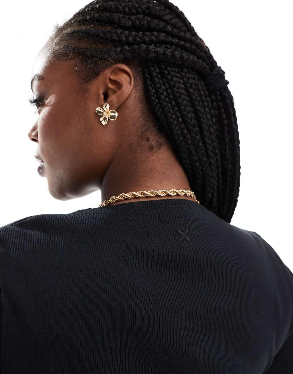 COLLUSION Plus lettuce edge ribbed T-shirt in black