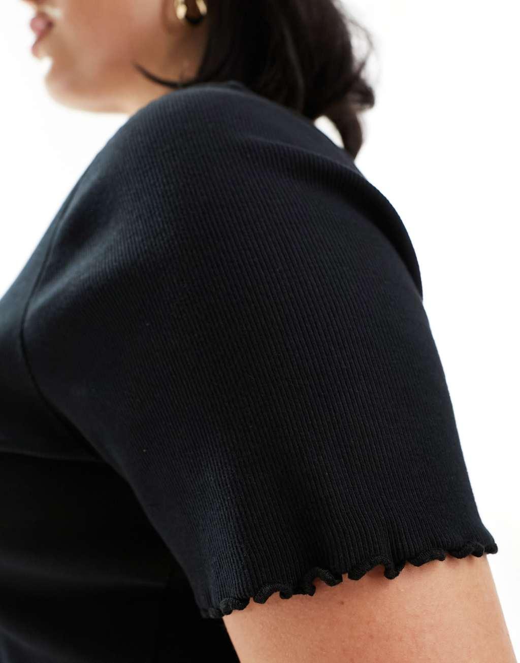 COLLUSION Plus lettuce edge ribbed T-shirt in black