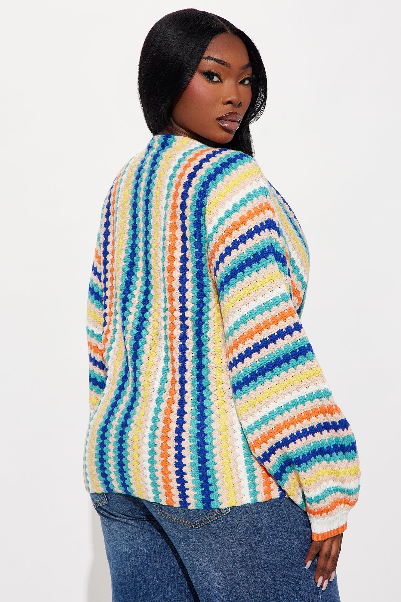 Available In Multi Color. Cardigan Color Stripes Open Front Disclaimer: Stripe Pattern May Vary. Self: 100% Acrylic Imported