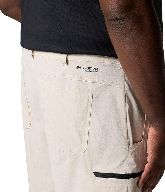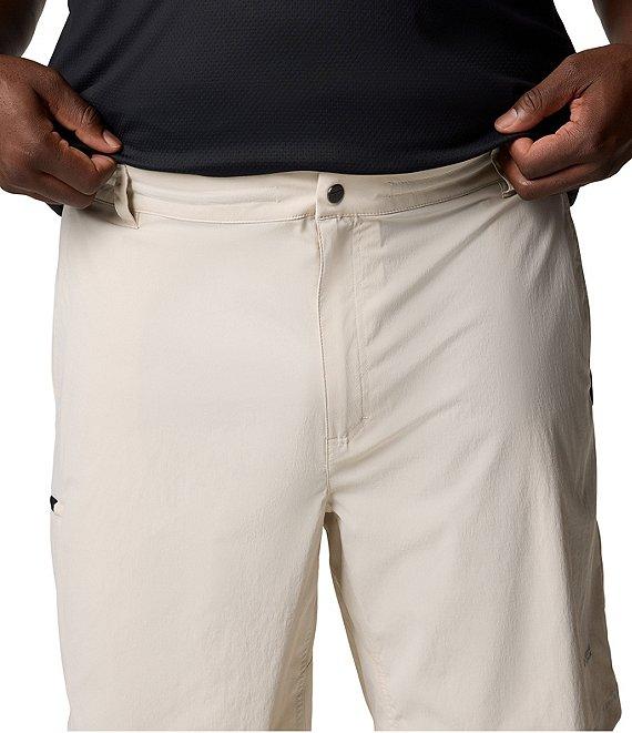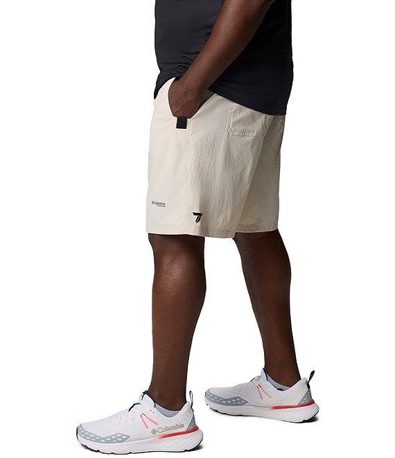 From Columbia Big & Tall, these shorts feature: Interior adjustable waistband for a just-right fit Hand pockets, back pockets, and a zippered security pocket for storage Knife-clip pocket is reinforced for durability 9" inseam Omni-Shade™ UPF 50 guards against skin damage using tight fabric construction and modified fibers to block UVA/UVB rays, so you stay protected in the sun Omni-Shield™ repels moisture and resists stains by preventing liquids from absorbing into fast-drying yarns, so you stay clean and dry in damp, messy conditions Nylon/elastane Machine wash/tumble dry Imported.