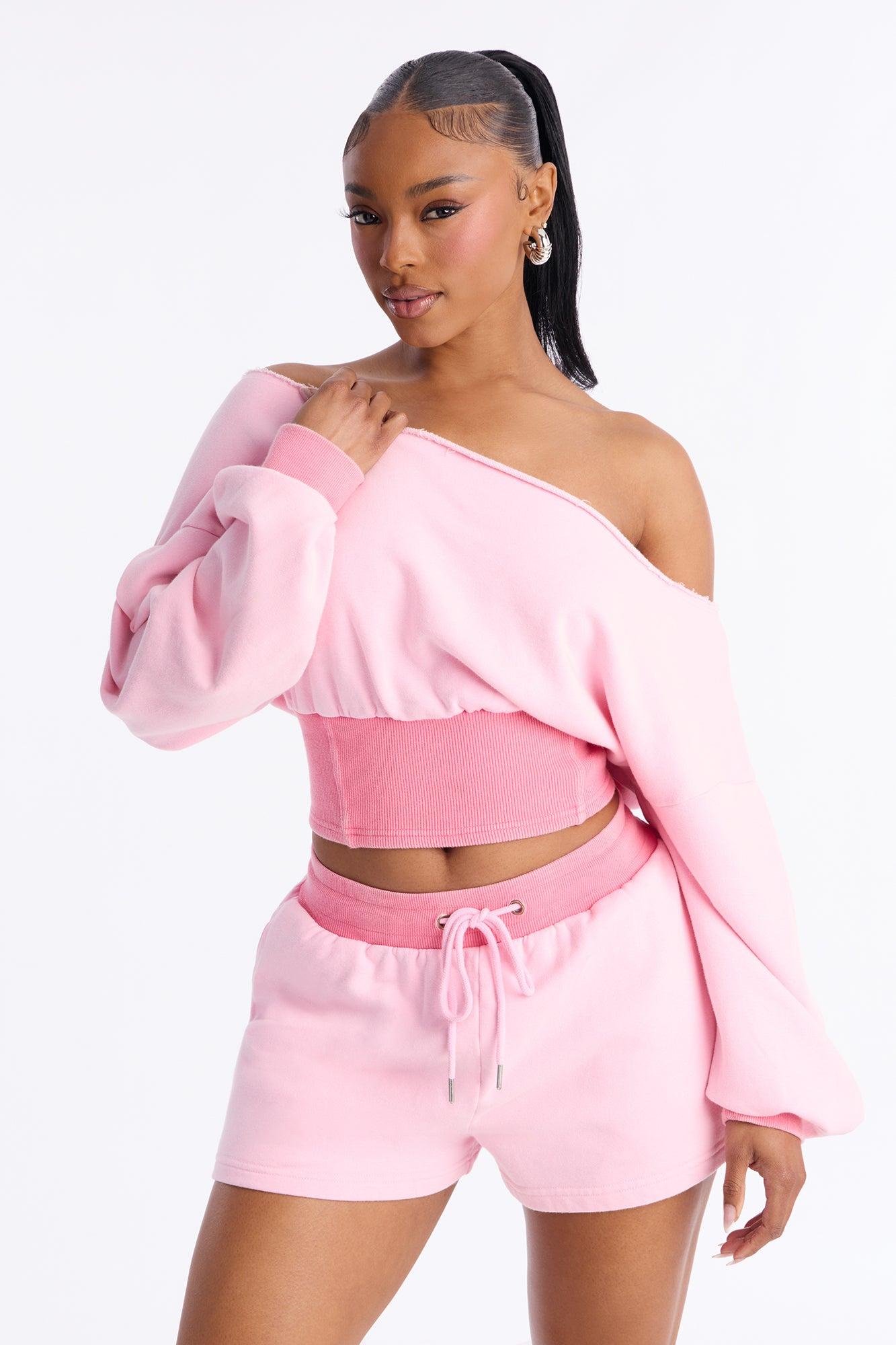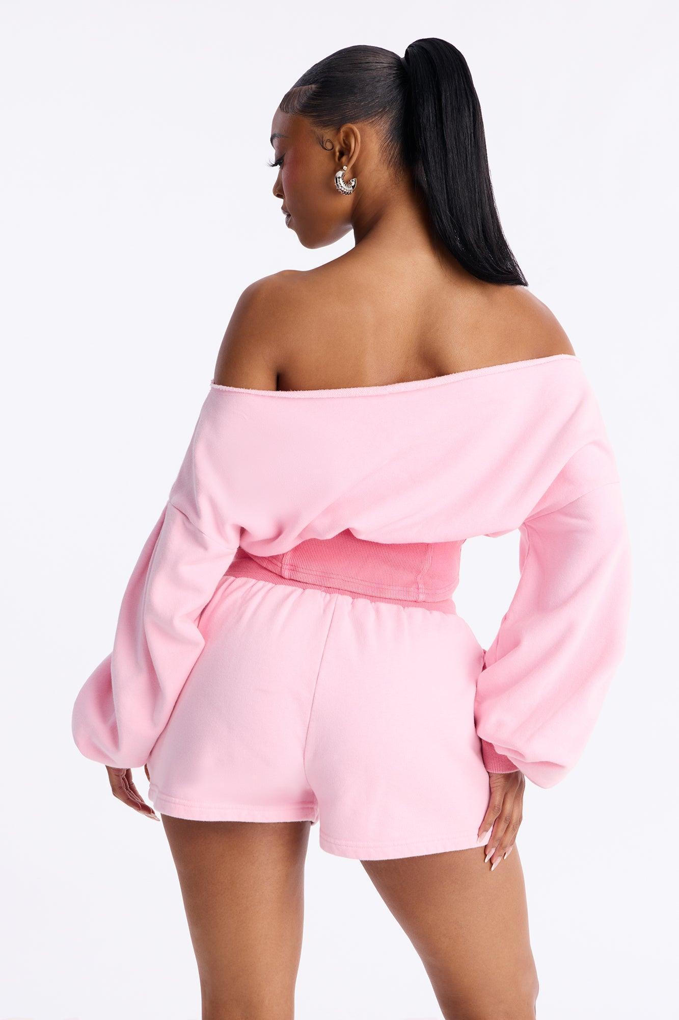 Come Find Me Washed Fleece Mix Short Set - Pink Female