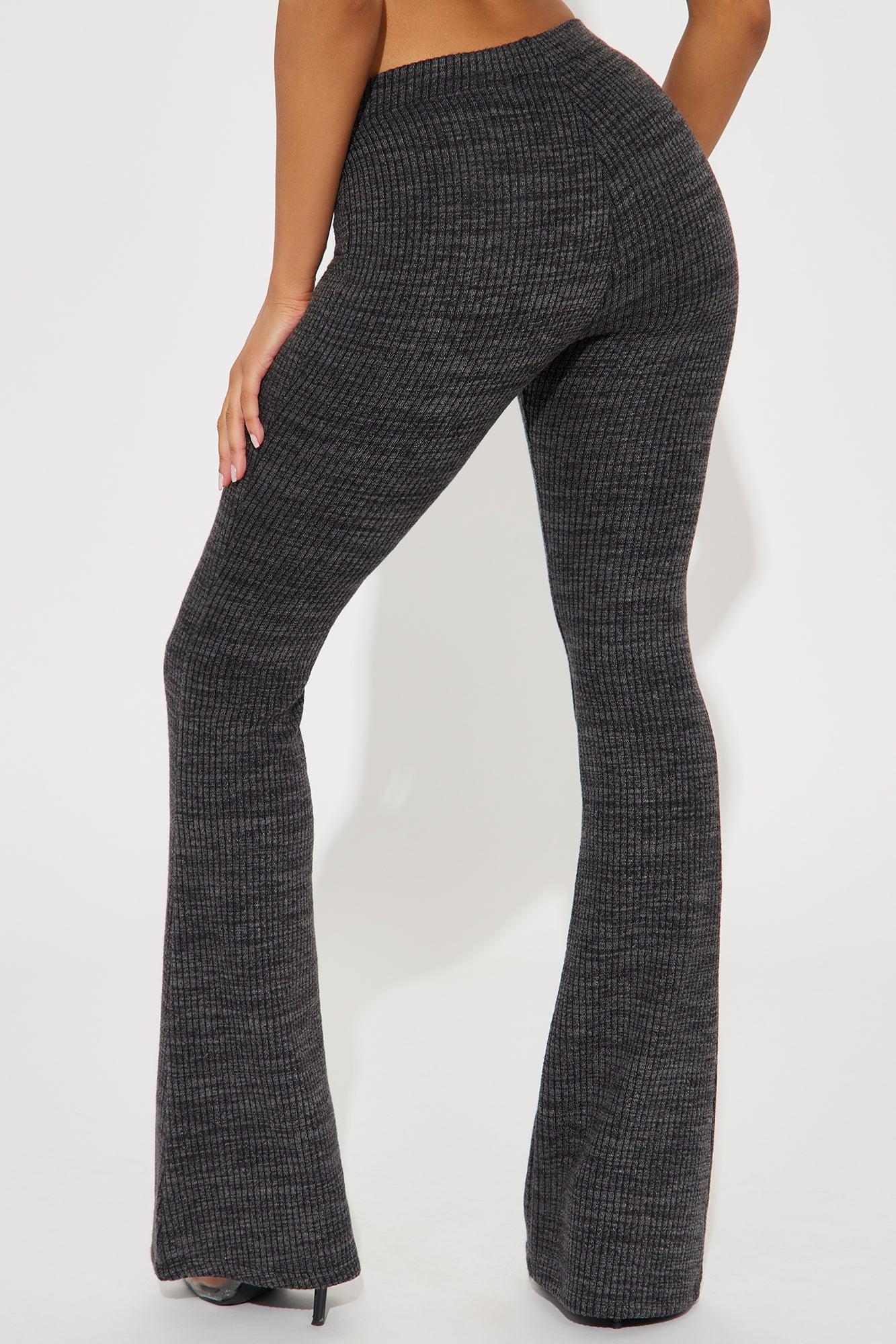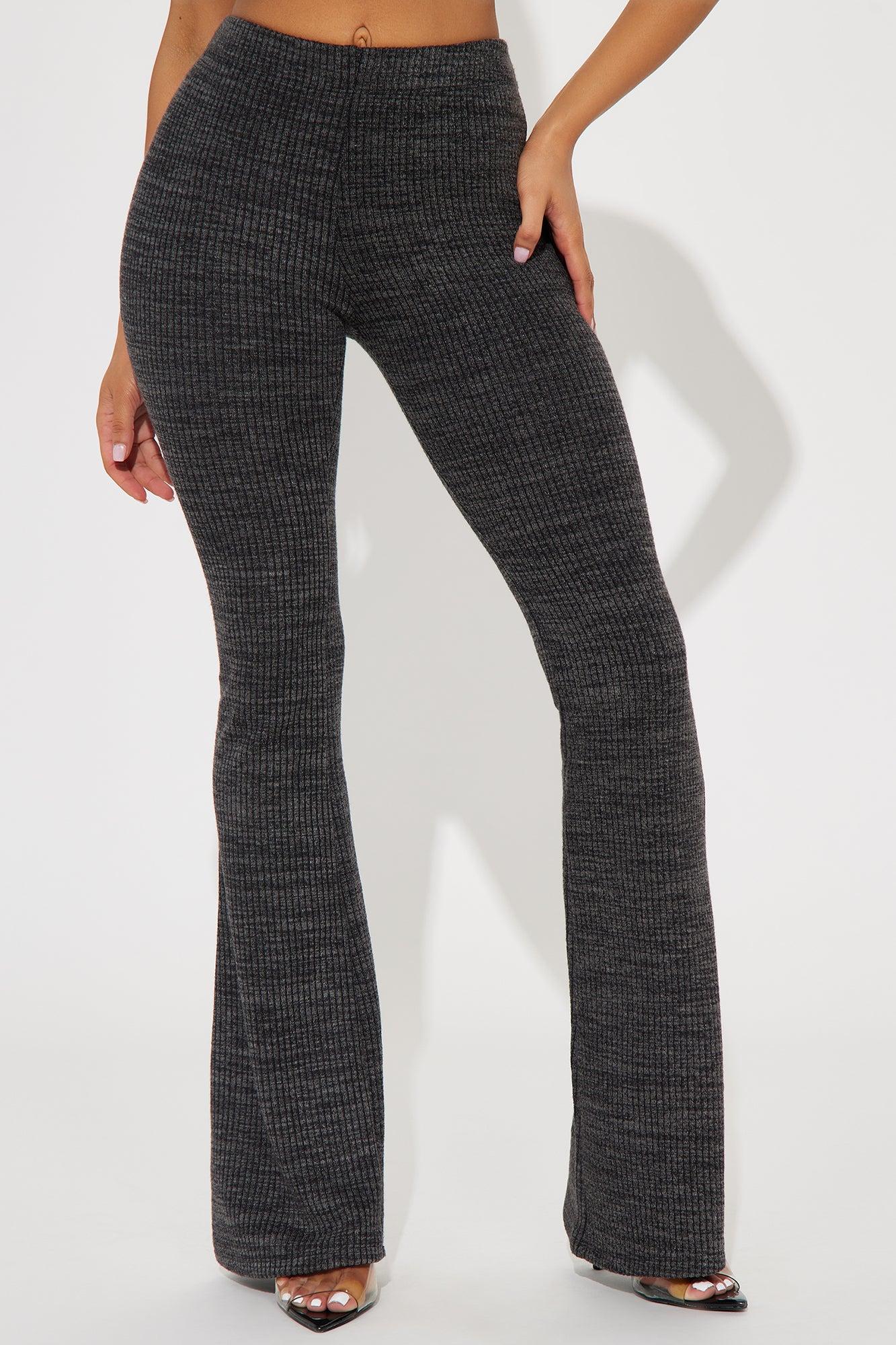 Available In Charcoal. Flare Pant Low Rise Elastic Waistband Sweater Knit Stretch 32" Inseam Self: 58% Polyester 41% Cotton 1% Spandex Imported
